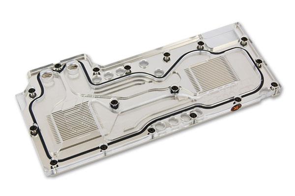 La prima versione, l'EK-FC590 GTX-Nickel, è caratterizzata da un top in plexyglass che permette di ammirare la struttura sottostante e i microcanali sovrastanti le due GPU.