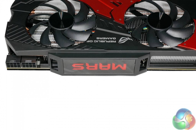 Il dissipatore custom rosso e nero con scritta “Republic of Gamers” è composto da due ventole da 8cm di diametro mentre per quanto riguarda l’alimentazione, la scheda necessita di due connettori aggiuntivi da 8-pin.