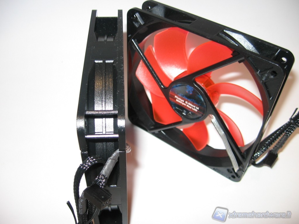 La ventola Phobya G-Silent 14 1100 RPM Red Led, oggetto della nostra recensione, si presenta nei colori nero e rosso. Lo scheletro è in plastica appunto di colore nero, nella cui parte centrale, oltre ad offrire sostegno al rotore, sono alloggiati anche i led rossi.