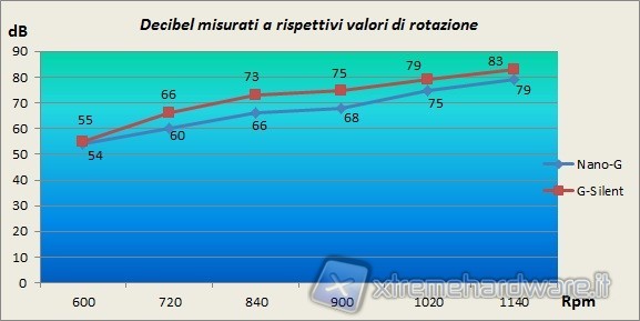 Come si può notare la tecnologia di rotazione Nano-G permette, a parità di RPM una rumorosità leggermente inferiore.