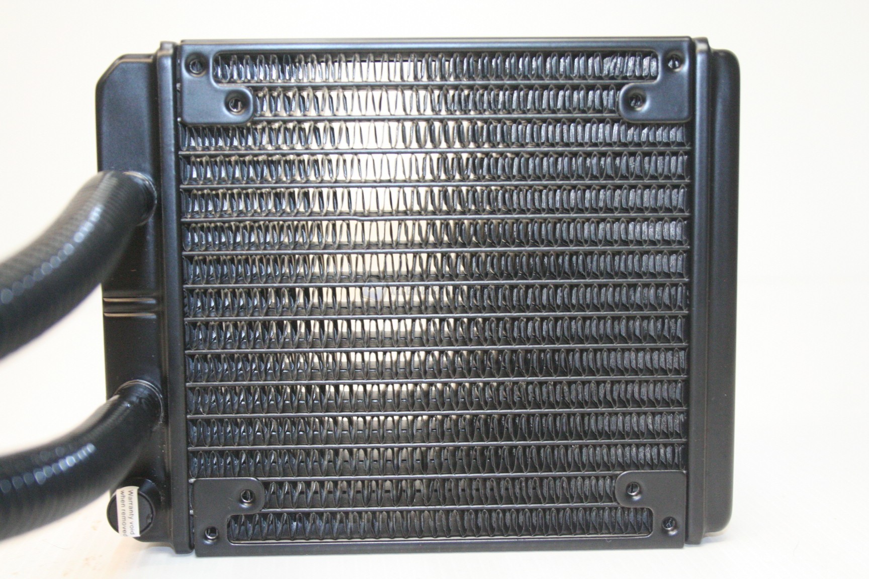 Il radiatore fa parte della classica tipologia di AIO da 140mm, con la possibilità di installare (retrocompatibile) anche ventole da 120mm. La spaziatura delle alette di è di circa 1.55mm, come il precedente, lo spessore delle alette di 0.1mm, un numero di setti del radiatore però ben maggiore (per via del maggiore interasse), e presenta una lunghezza dei tubi di 31cm.