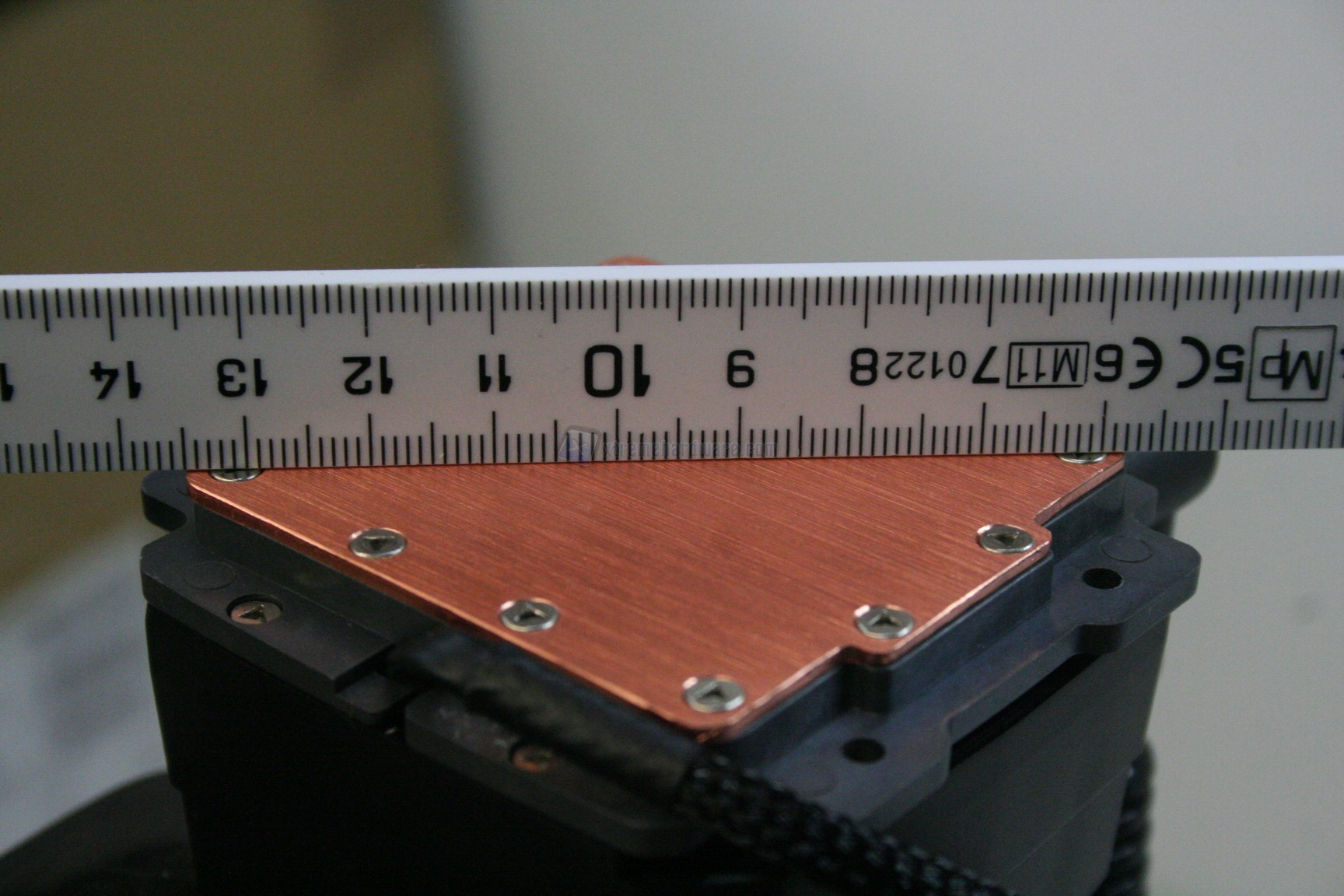 NOTA AIO: la tipologia, essendo molto diversa dai comuni dissipatori a torre, dovrebbe permettere in linea teorica di ottenere performance di dissipazione davvero molto elevate, se non addirittura al massimo possibile. Un radiatore di questo spessore per la sola CPU potrebbe arrivare a gestire un carico di lavoro pari e superiore a 250W, con il giusto connubio di ventole (caso estremo). Dissipatori a torre, per ottenere performance simili, devono essere o di dimensioni gigantesche, oppure di un materiale con più elevata dispersione termica, quale ad esempio il rame. Questo fu il caso, ad esempio, del Thermalright TRUE Copper, dal peso di due kilogrammi circa ; un tale peso può essere in grado di spaccare completamente il socket di una scheda madre, se in posizione verticale. Non è questo il caso con dissipatori AIO, che quindi non portano minimamente a nessuna deformazione del PCB della scheda madre, a patto che vengano installati come da manuale.
