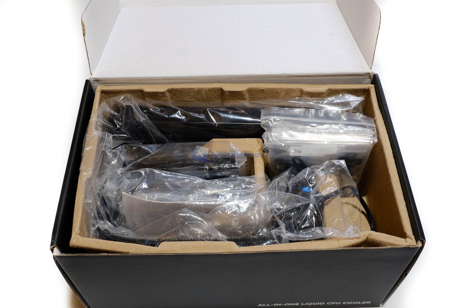 Il dissipatore Itek Taurus Icered 240 è riposto all’interno di una scatola di notevoli dimensioni, caratterizzata da una doppia colorazione nera-rossa. La confezione garantisce un’ottima protezione durante il trasporto, inoltre fornisce utilissime informazioni sulle caratteristiche del prodotto.