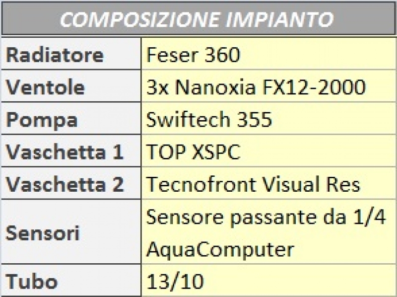 L’impianto usato per il test è così composto: