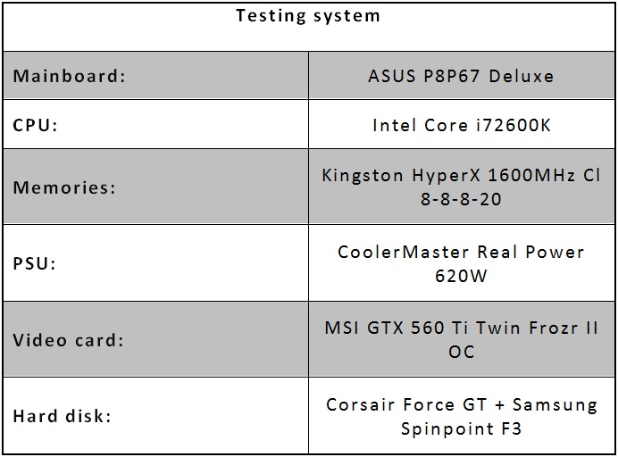 The test system used to test the Corsair Force GT is based on Intel P67 chipset; the motherboard is an Asus P8P67 Deluxe B3 step, free from the SATA II chip problem detected in step B2. Although the SATA II connection speed is limited to the declared 3 Gbit/s (384MB/s) we have done likewise the tests using that connection, because the SATA III devices are backwards-compatible with the previous standard.