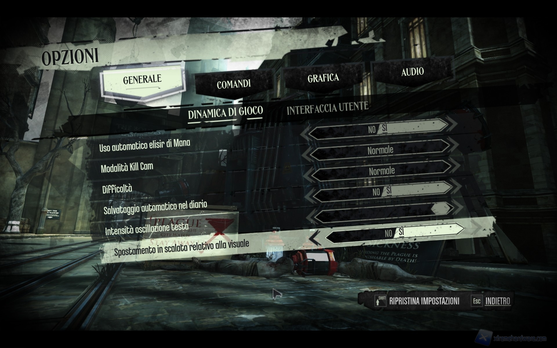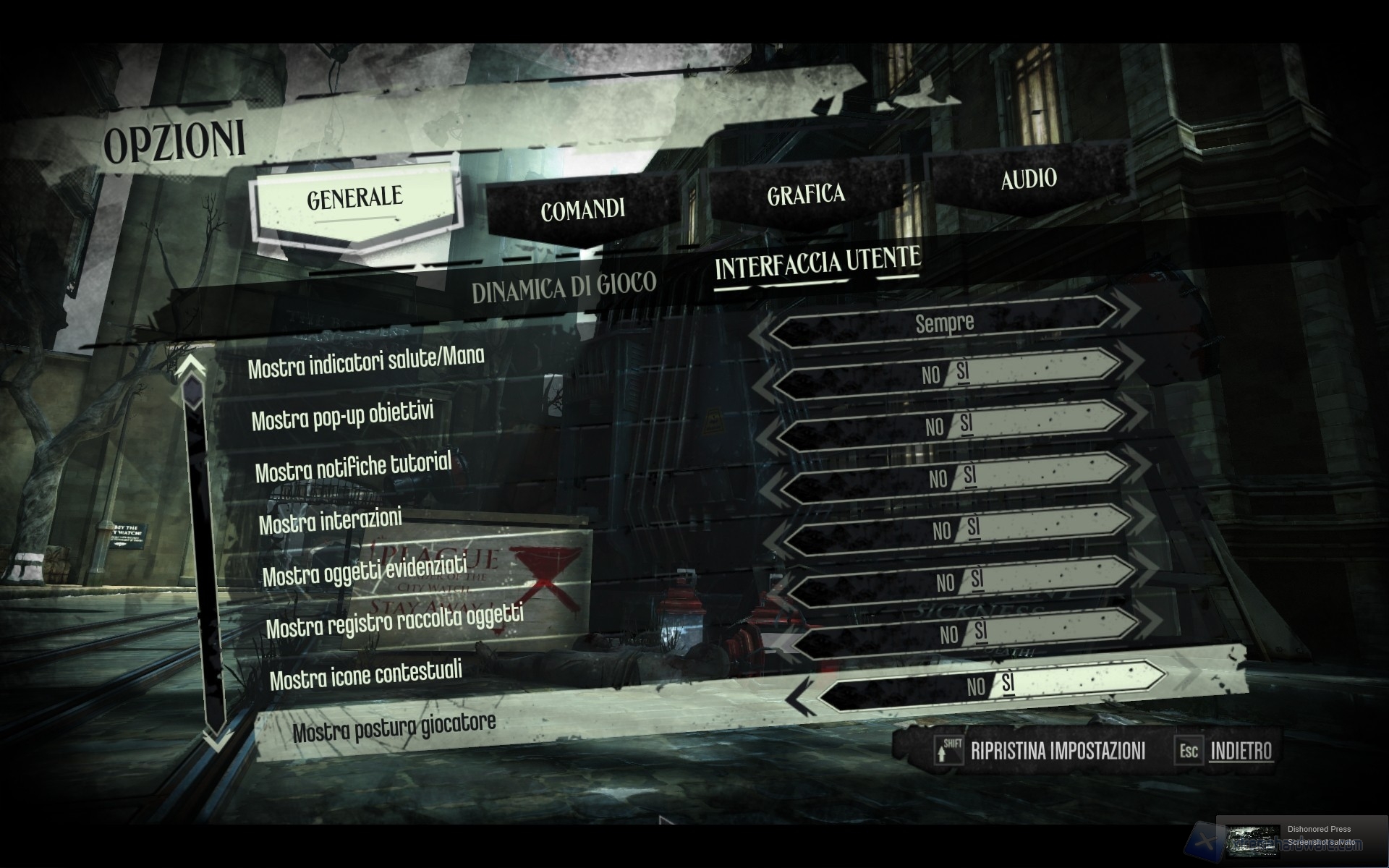 Un altro elemento distintivo, oltre alle abilità, è l’inventario, il numero di armi e potenziamenti a disposizione ed anche il numero delle informazioni reperibile negli ambienti, che verranno annotati automaticamente nel proprio diario delle quest, molto simile a quello utilizzato in Skyrim. E’ possibile scalare i palazzi ed utilizzare una sorta di teletrasporto a breve distanza per raggiungere anfratti nascosti e celarsi da sguardi indiscreti, anche se non ai livelli di Assassin’s Creed. Sarà molto importante, nel prosieguo dell’avventura, l‘ammontare del “Caos" ovvero di un elemento il cui conteggio avverrà solamente al termine di ogni missione. In base al profilo di gioco sarà possibile modificare in parte il corso degli eventi, rendendo più o meno manifesta l’avversione o l’apprezzamento nei propri confronti da parte dei protagonisti dell’avventura. Sappiate che è possibile terminare la storia senza aver ucciso nessuno, come invece sarà possibile sterminare tutto e tutti. In questi due casi, la stessa Dunwall ne risentirà, portando all’aumento delle guardie, dei piangenti, degli assassini e delle infestazioni di ratti.