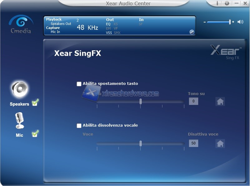 Nel ‘’Menù’’ Speaker potremo accedere alle varie personalizzazioni di campionamento, equalizzazione, virtualizzazione, sound effect e cosi via. La modifica è immediata e di facile comprensione vista anche la localizzazione in italiano del software.