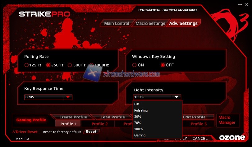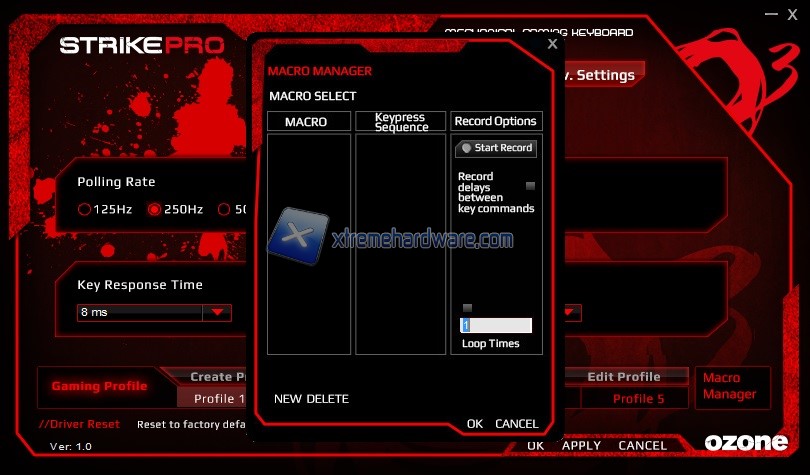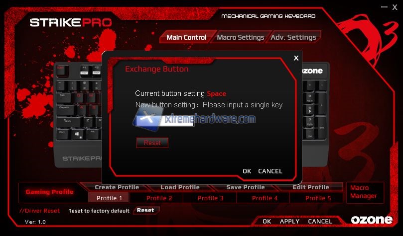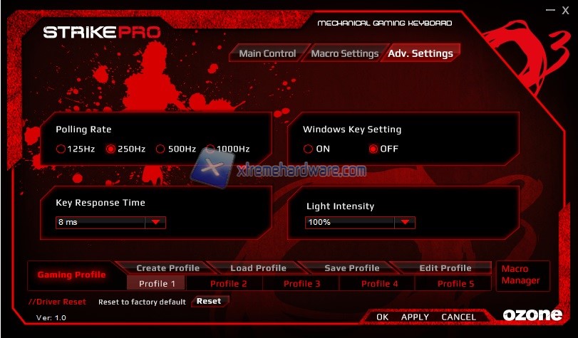 Avviato ci troveremo di fronte un software non molto diverso da quanto visto tempo fa con la Strike Battle. La grafica e design di tale software sono molto aggressivi grazie ai colori classici utilizzati da Ozone. Software composto al solito da un’immagine 3D della tastiera e da diversi e semplici Menù sia per quanto riguarda le funzioni sia per quanto riguarda la gestione dei Profili.