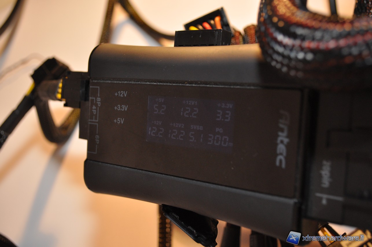 L’alimentatore è stato in grado di mantenere i valori nominali di tensione anche a pieno carico, continuando ad erogare 12.1V con oltre 70A di assorbimento.
