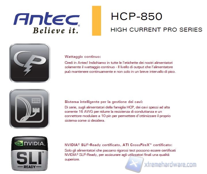 Alimentatore Antec HCP-850, potenza ed efficienza garantiti - Specifiche Tecniche e Datasheets
