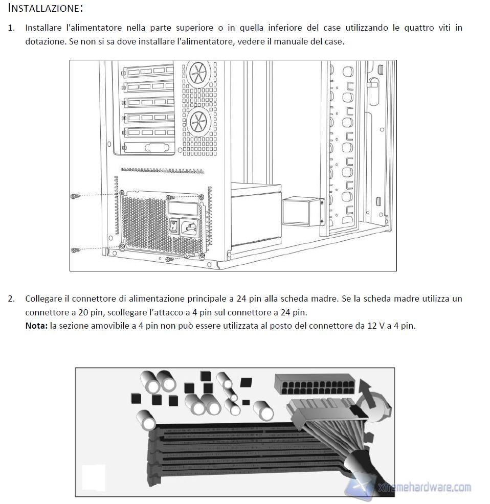 L’alimentatore risulta essere mediamente silenzioso con un carico medio, però sotto carico la rumorosità sarà leggermente più elevata, e si farà sentire. Nel complesso però la regolazione è più che soddisfacente. Data l’assenza di un simulatore di carico dedicato, purtroppo non possiamo fornirvi misurazioni dirette, anche perché la rumorosità del sistema di test era molto superiore a quella dell’alimentatore. Comunque sia la rumorosità non sarà una peculiarità di questo modello. In  questo caso è necessario montare l’alimentatore alla solita maniera, ovvero con le fessure di ventilazione rivolte verso il basso (per favorire l’espulsione posteriore). Vi riportiamo alcune fotografie dell’installazione, direttamente tratte dal sito di Antec: