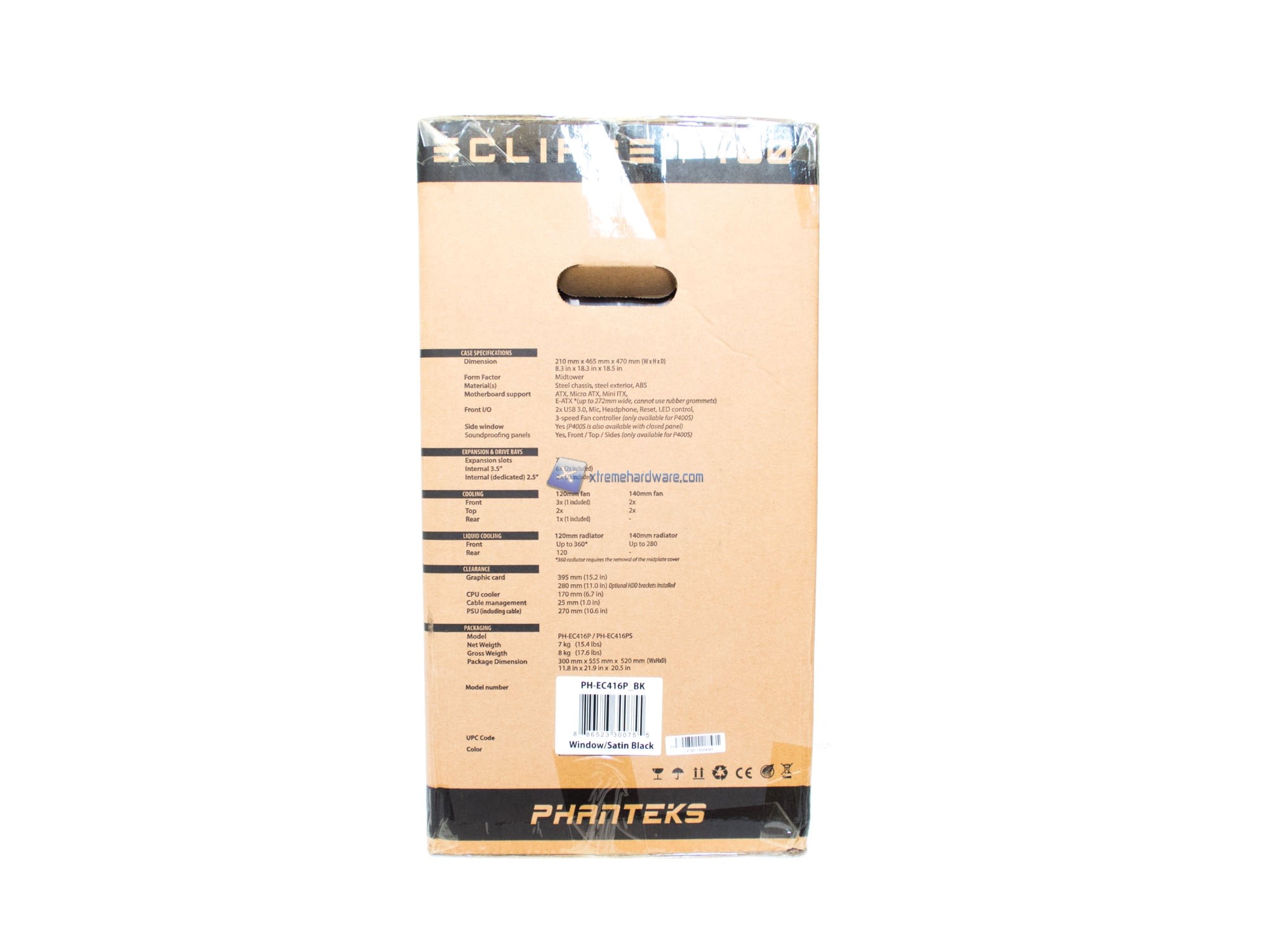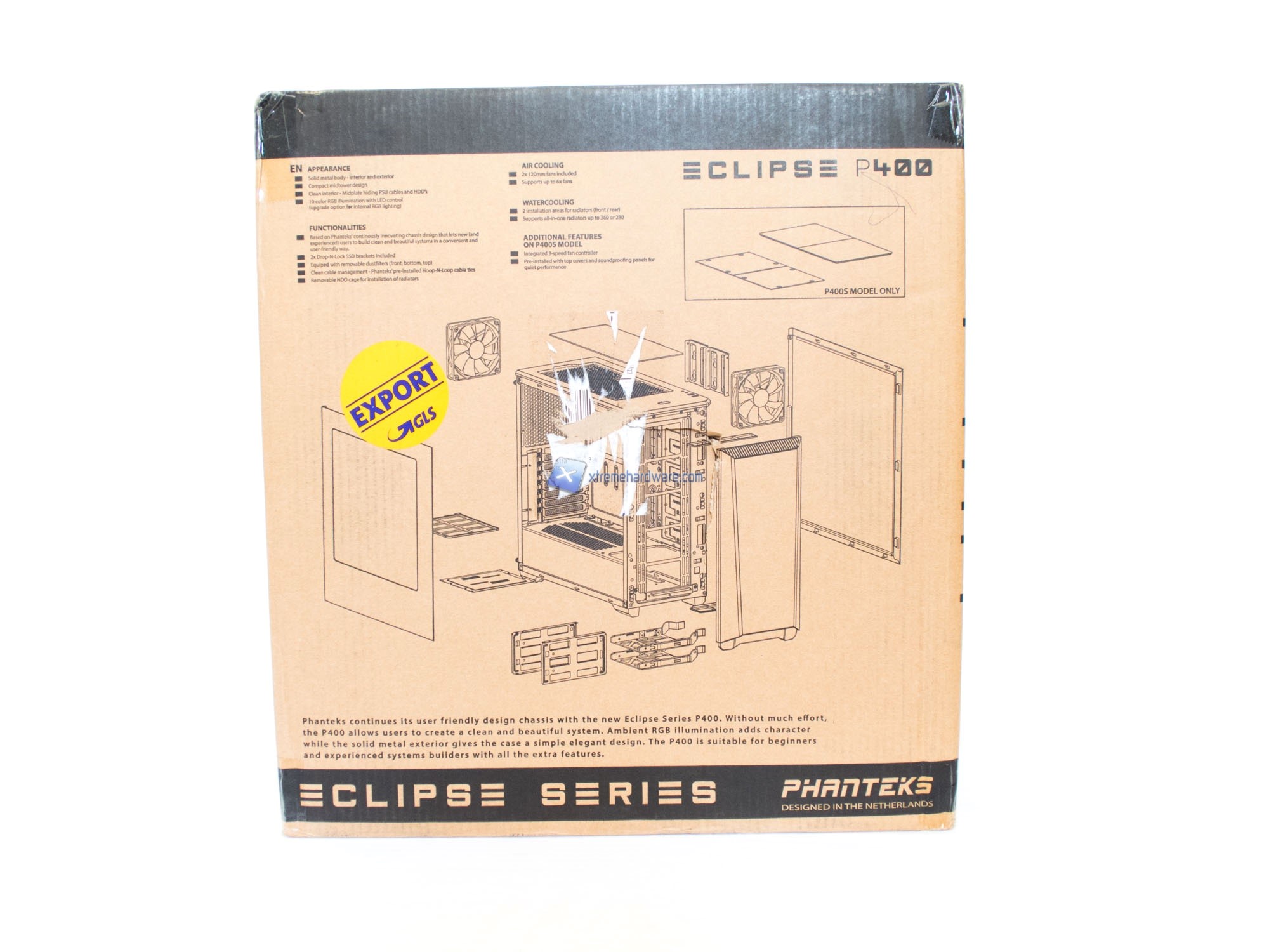 Anche per il Phanteks Eclipse P400 è stata scelta una confezione classica in cartone sulla quale troveremo qualche immagine e le diverse specifiche tecniche del prodotto.