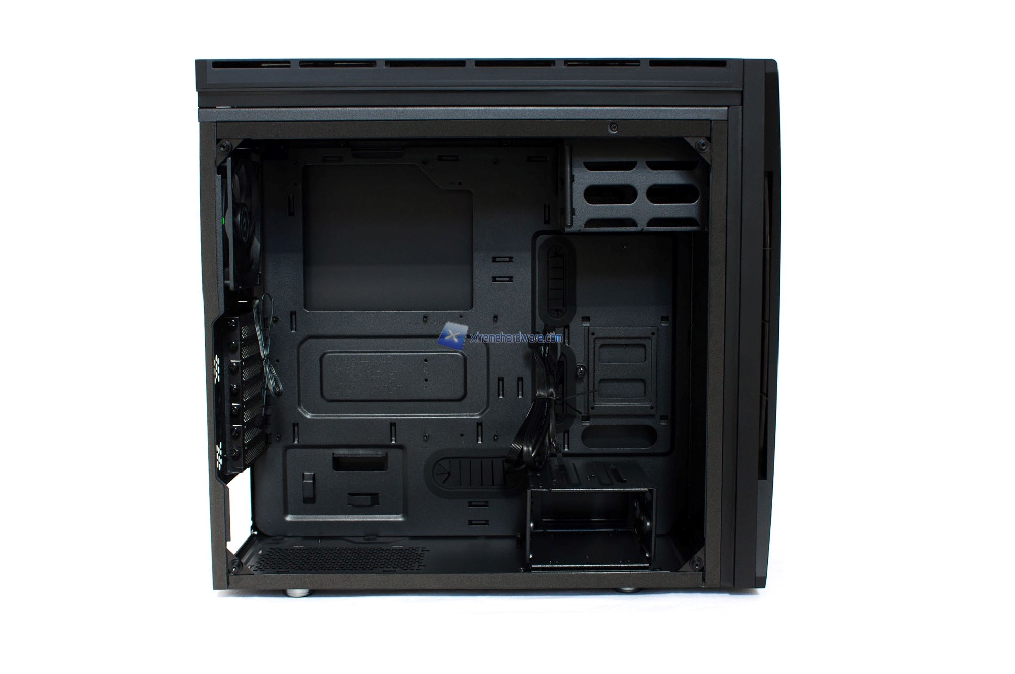 Rimossi i pannelli laterali con estrema attenzione e delicatezza possiamo accedere all’interno del case per osservare lo spazio e la disposizione che esso ci mette a disposizione.