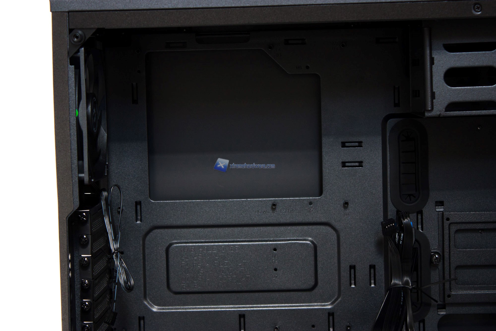 Nel lato di sinistra invece in corrispondenza del cage per Hard Disk da 3,5’’ troviamo la zona con relativa griglia e filtro dedicata all’alimentatore.