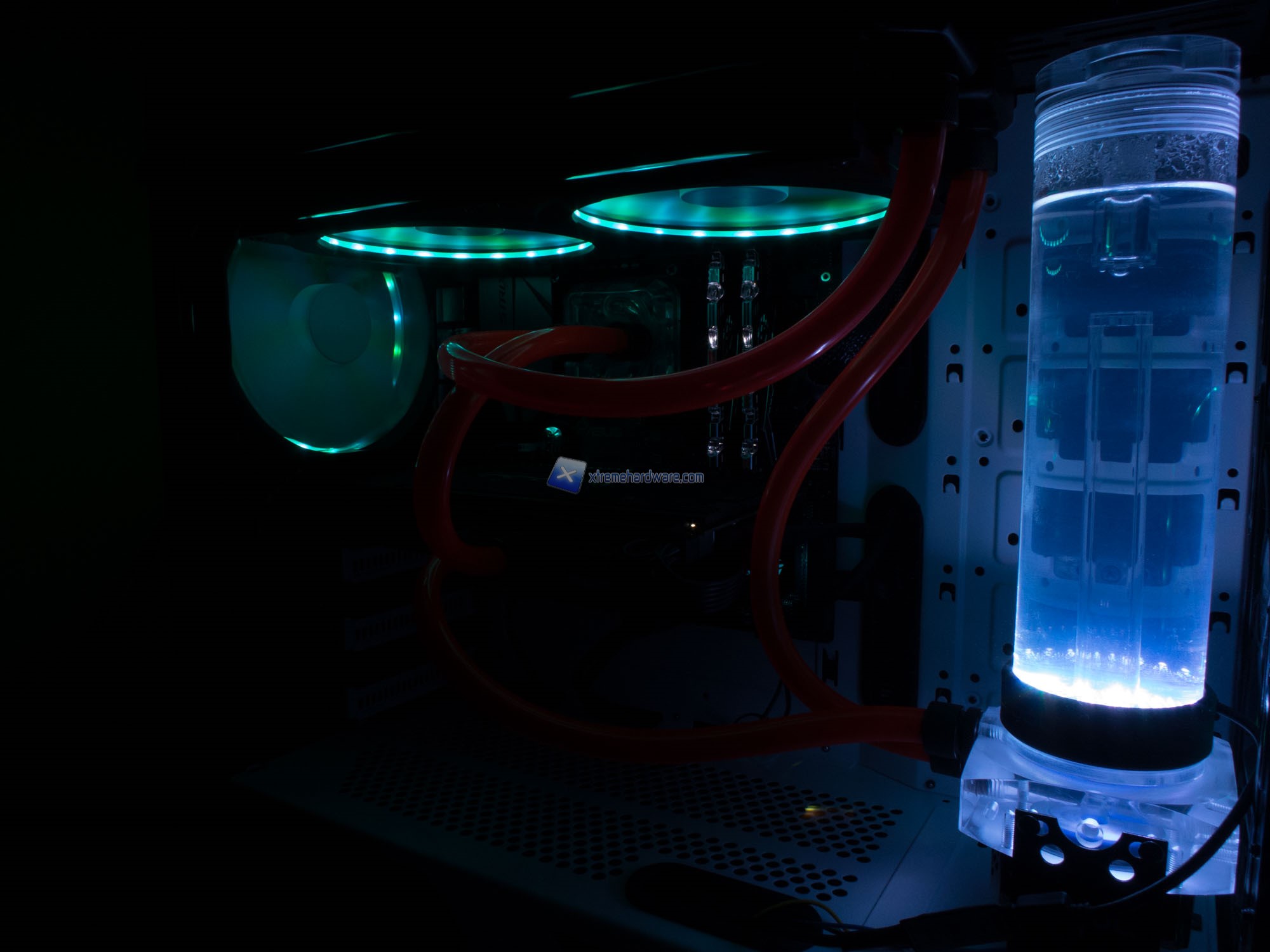L’installazione nel Phanteks Enthoo Pro M Special Edition ha richiesto davvero poco tempo giusto il tempo di installare tutti i componenti, prendere le misure esatte dei tubi (vista la configurazione a liquido integrata) e aggiungere le ventole aggiuntive con relativi frame Phanteks Halos. I nostri componenti come sempre sono stati perfettamente collocati e senza alcun tipo di problematica durante il montaggio. Lo spazio è adeguato e i fori per dove far passare tutti i cavi sono ottimizzati bene per creare una configurazione quanto più pulita e ordinata. Nulla da dire al collaudato Enthoo Pro M.