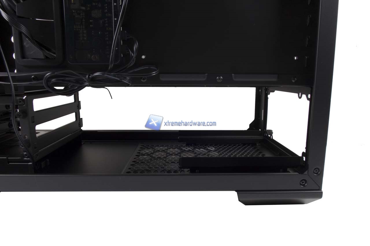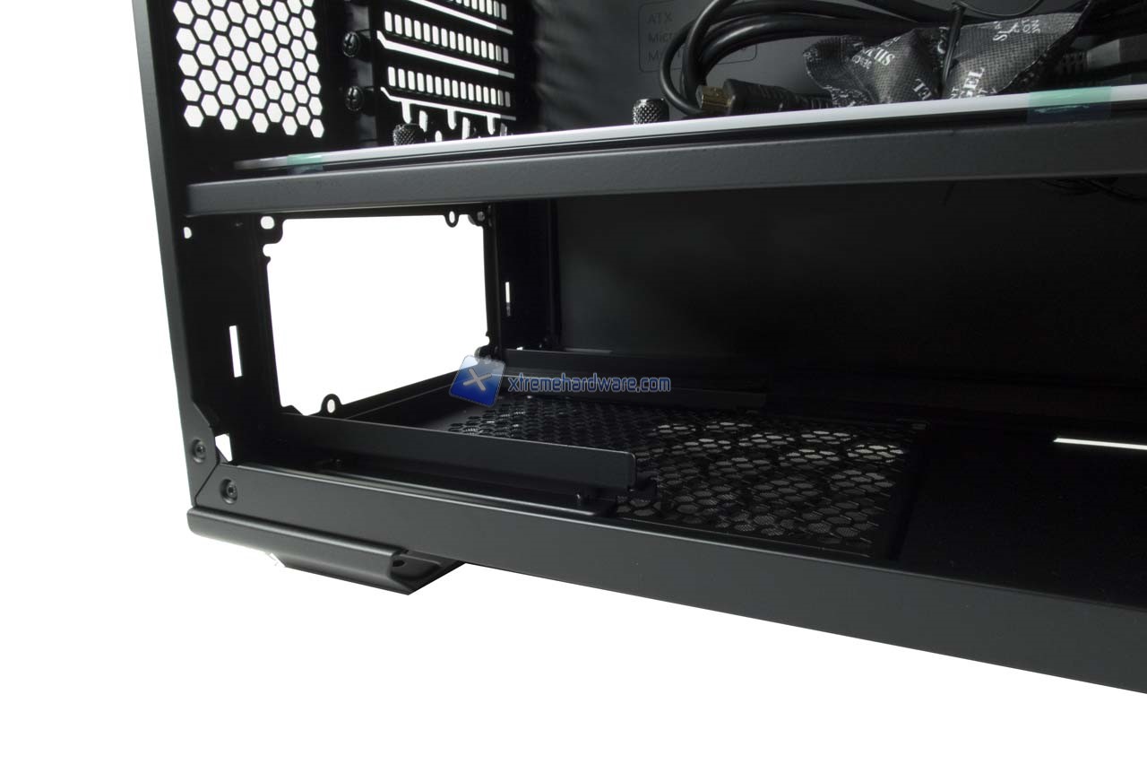 Dall’immagine a seguire notiamo non solo i suddetti fori ma anche lo spazio, previa rimozione del secondo Cage per Hard Disk nel lato inferiore, per poter installare un eventuale radiatore nel lato frontale interno del case.