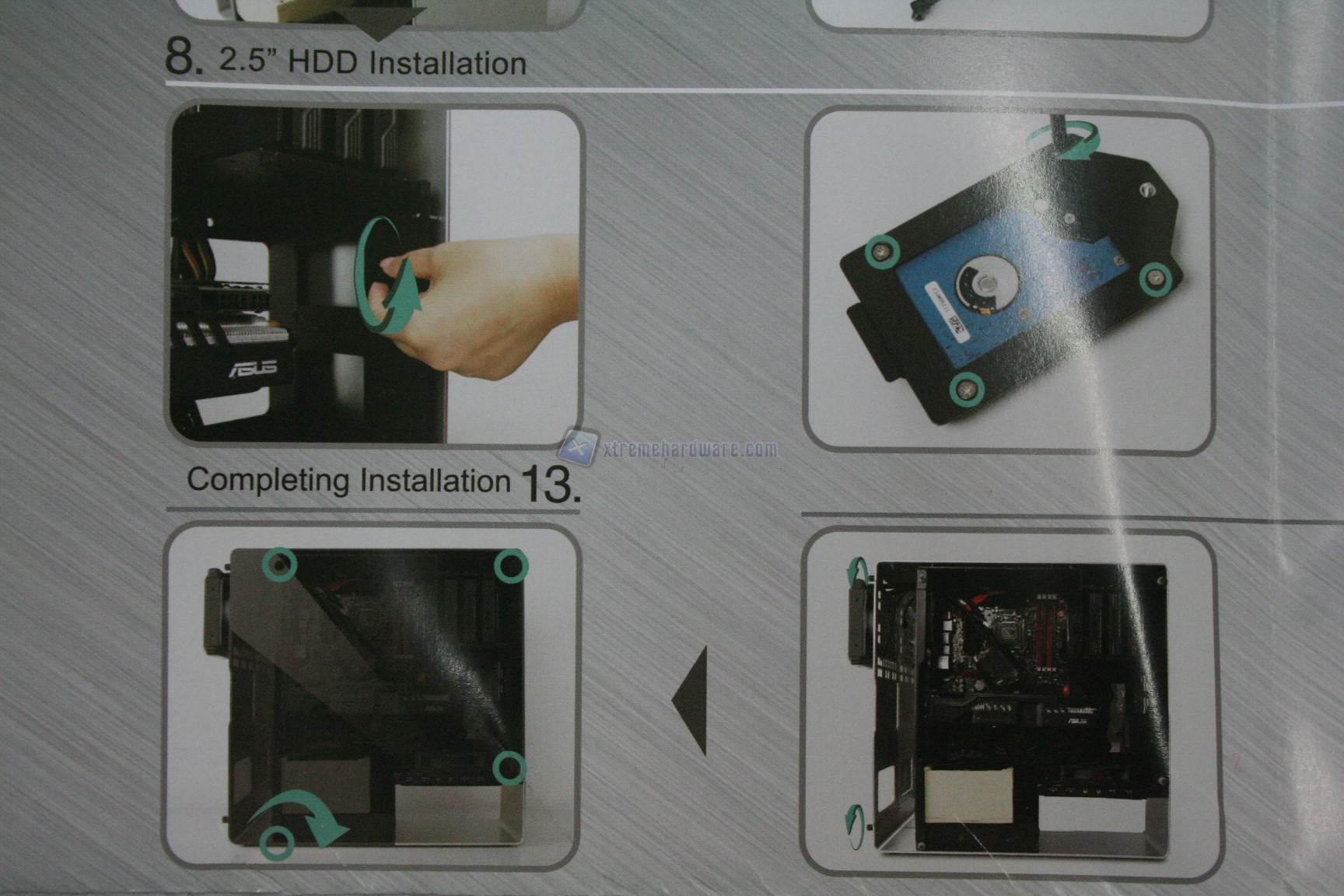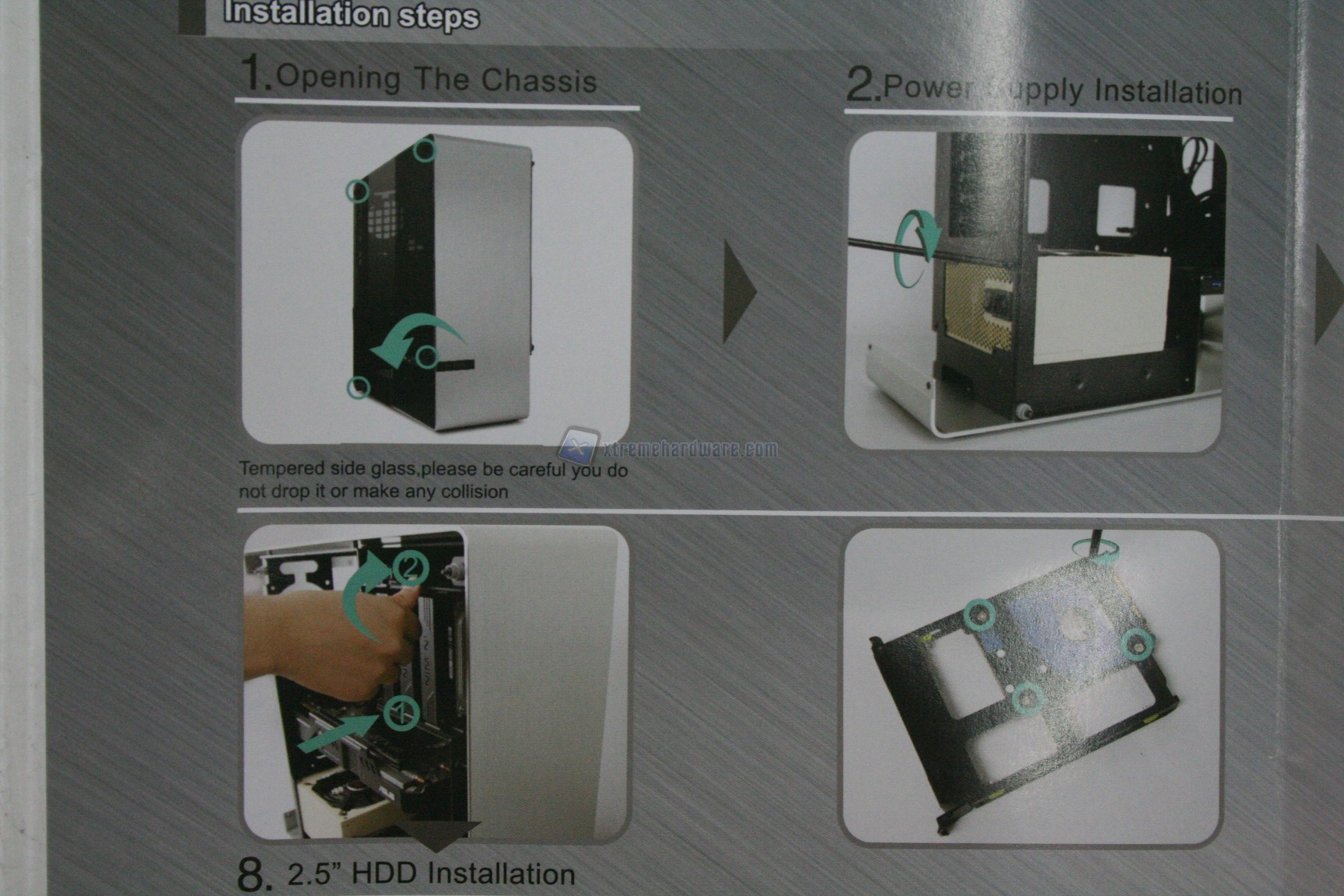 In questo paragrafo analizzeremo velocemente il montaggio di un sistema Intel, ed il conseguente cablaggio posteriore ed anteriore. Anche per gli utenti poco esperti la procedura è molto facile: per prima cosa dovrete montare l’alimentatore alla base del cabinet, facendo attenzione a passare il connettore di alimentazione supplementare della scheda madre, da 4/8 pin direttamente sopra la VGA, se il connettore non è molto lungo o se non siete in possesso di prolunghe di alimentazione. Date le dimensioni ridotte, difficilmente saranno necessarie delle prolunghe per il connettore CPU 4+4 pin e per il connettore della scheda madre, ma ne consigliamo sempre l’adozione. Fatto questo consigliamo l’installazione dei dischi rigidi, facendo attenzione a posizionarli in serie nei cage predisposti a scorrimento. Fatto questo sarà necessario montare il lettore ottico/fan controller: dovrete togliere la mascherina inferiore, una procedura davvero immediata, che è possibile visionare nei capitoli precedenti. Uno sguardo al sistema:
