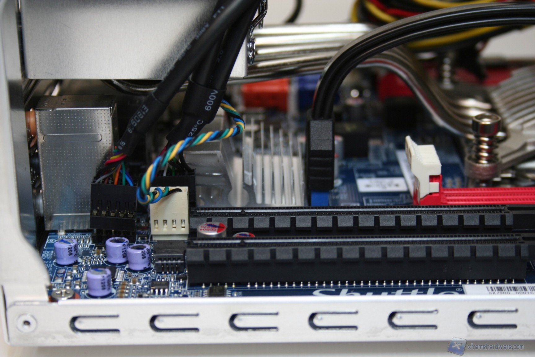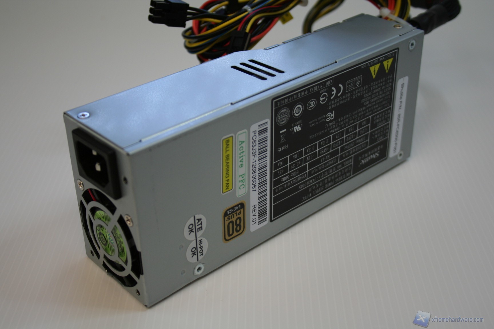 L’alimentatore, sebbene presenti dimensioni complessive ridotte, è il modello top di gamma Shuttle ed è un'unità da 500W con certificazione 80Plus Bronze, il che significa che è qualitativamente molto elevata, data la grandezza e la tipologia. Non a caso ha permesso l’installazione di una delle VGA più impegnative a livello di assorbimento energetico, la Nvidia GeForce GTX480, che richiede 42A sulle rail da +12V. La potenza erogata dall’alimentatore è certificata per tenere a bada una CPU SB-E i7-3960K ed una VGA della serie NVIDIA GTX 680 oppure la nuovissima AMD HD 7970, anche GHz Edition. Il numero dei connettori è buono e la lunghezza è appropriata al cabinet quindi non ci saranno problemi o necessità di prolunghe secondarie, come invece è necessario in molti altri casi.