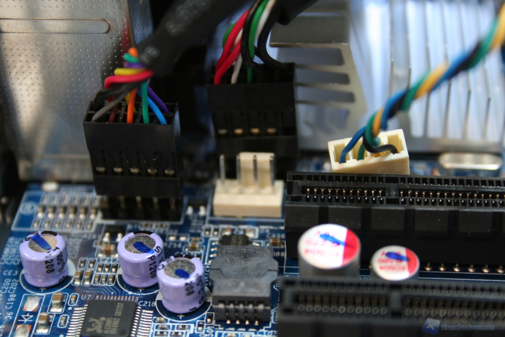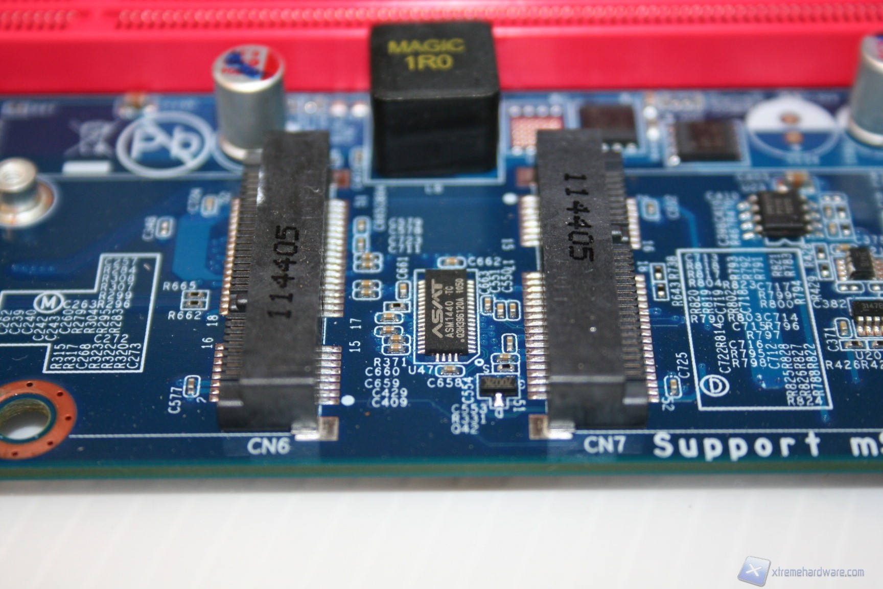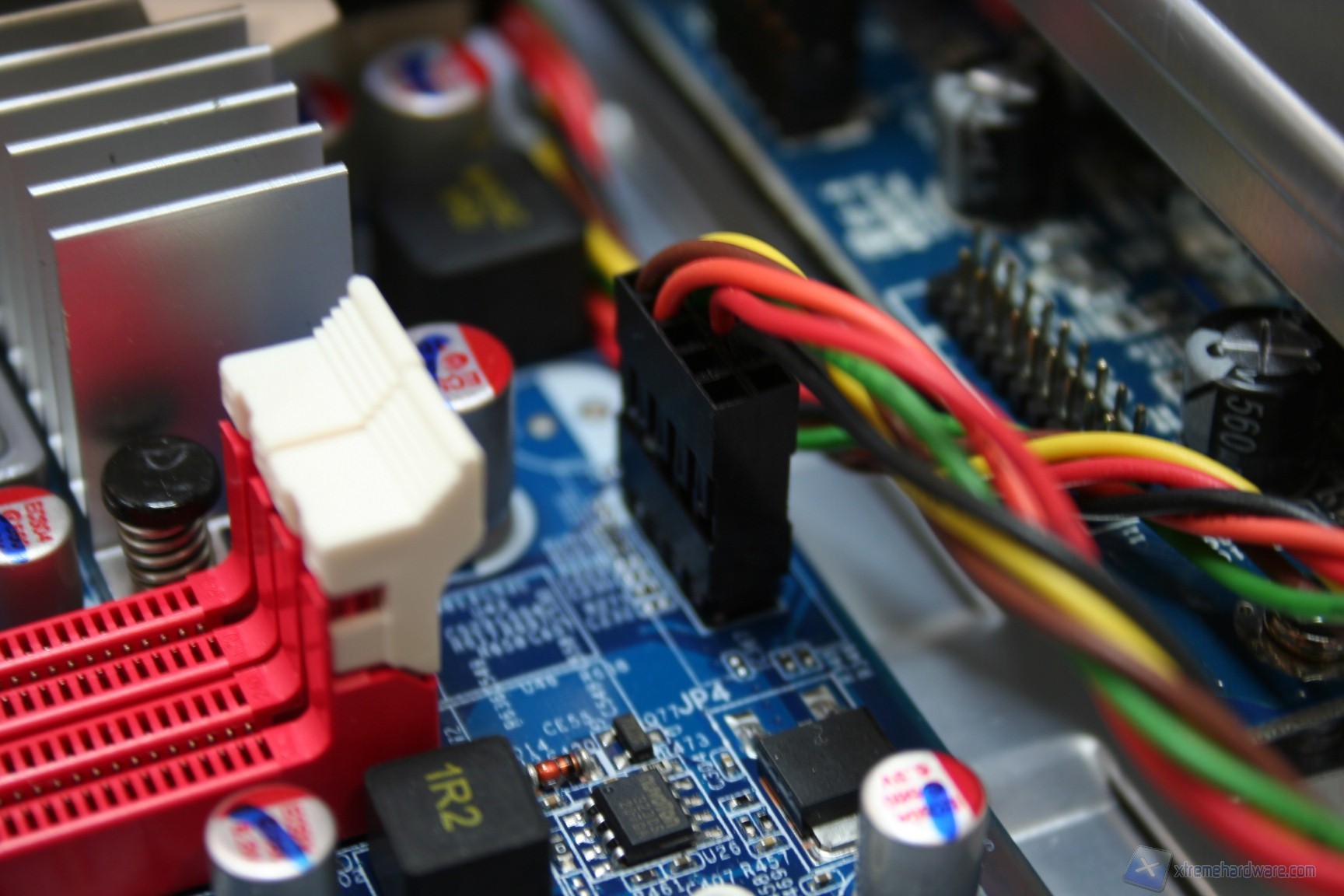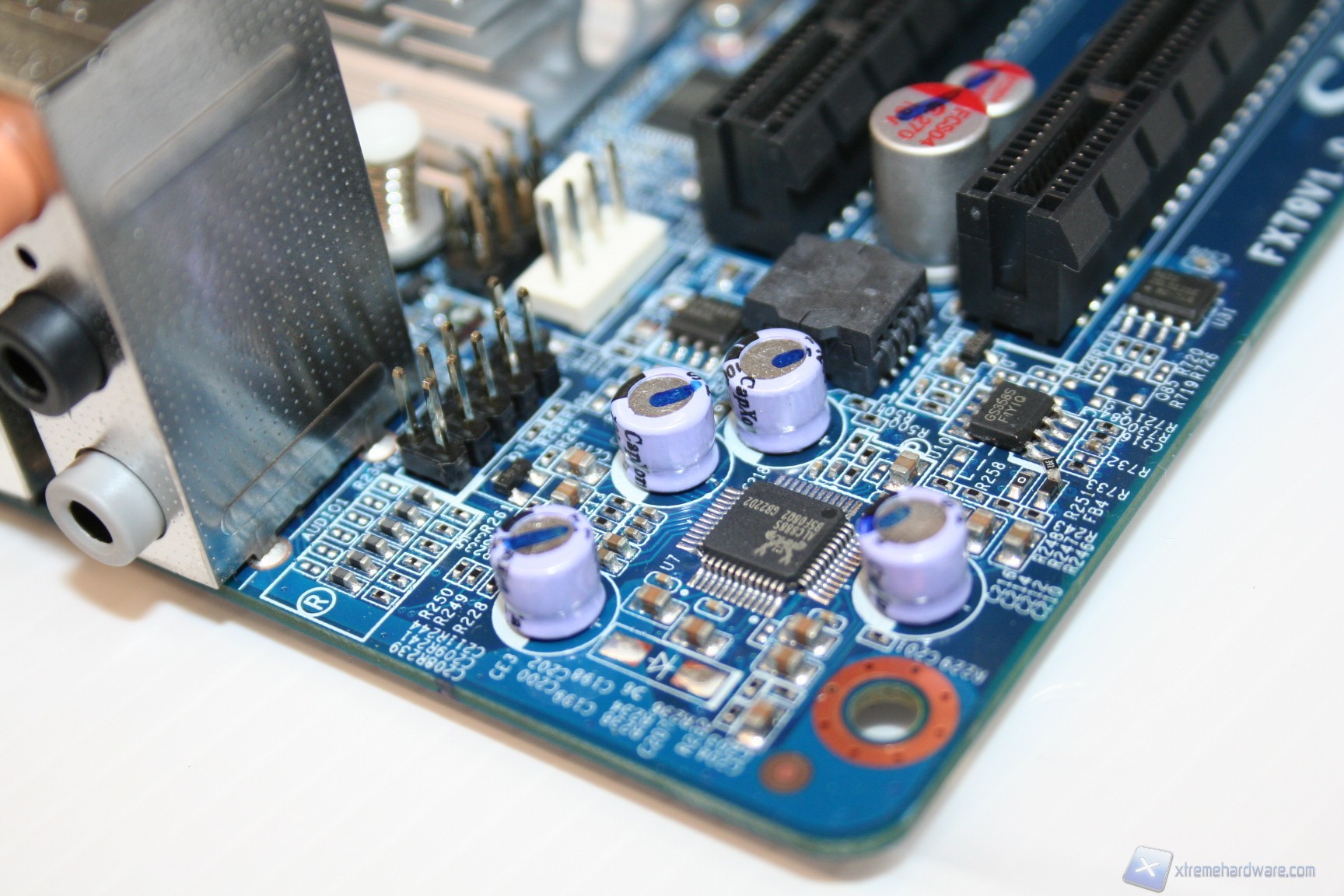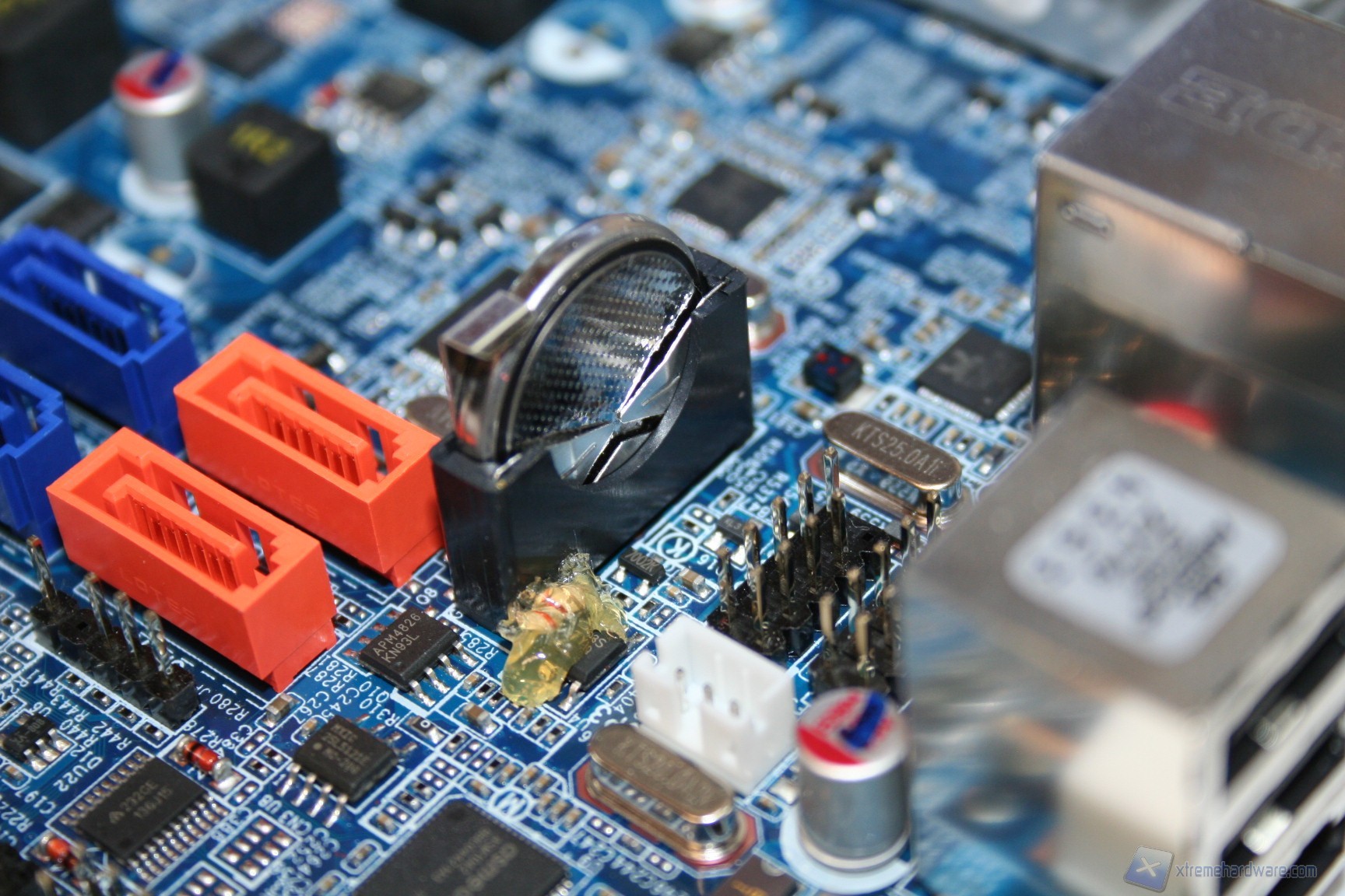 Le fasi di alimentazione, data la tipologia dei processori potenziali, sarebbero dovute essere molte, ed infatti ne troviamo ben sette, più una per ogni coppia di memorie RAM. L’organizzazione delle componenti è davvero ottima, come è notevole il grado di pulizia e lavorazione. I banchi di RAM presentano il vecchio ed ottimo sistema di bloccaggio binato, a differenza di quello singolo che si sta cominciando ad utilizzare, e che risulta problematico in determinati casi. Al contrario, per ragioni di spazio e praticità, gli ingressi PCI-E non presentano nessun sistema di bloccaggio, bensì semplicemente uno ad incastro orizzontale. Questo sistema è davvero molto pratico e quindi adatto alla tipologia di cabinet. I dissipatori utilizzati sono semplici ma efficaci, sebbene però siano in alluminio e non in rame. Dato il costo e data la necessità di dissipare calore grazie alle CPU impegnative, sarebbe stato carino inserirli. Altra nota da migliorare è l’inclusione di bobine di arresto non scudate, che di solito su componenti del genere vengono adoperate di migliore qualità. Comunque sia ciò non rappresenta un problema rilevante, e non sono presenti rumori derivanti da picchi di frequenza sotto carico. Nel PCB troviamo due connettori SATA 2.0 e due SATA 3.0, in blu. La compatibilità con le configurazioni RAID è elevata in quanto essendo gestita direttamente dall’ Intel® X79 Express Chipset (codename: " Patsburg") - chiamato anche PCH (Platform Controller Hub) or South bridge - è permesso il RAID0,1,5 e 10.