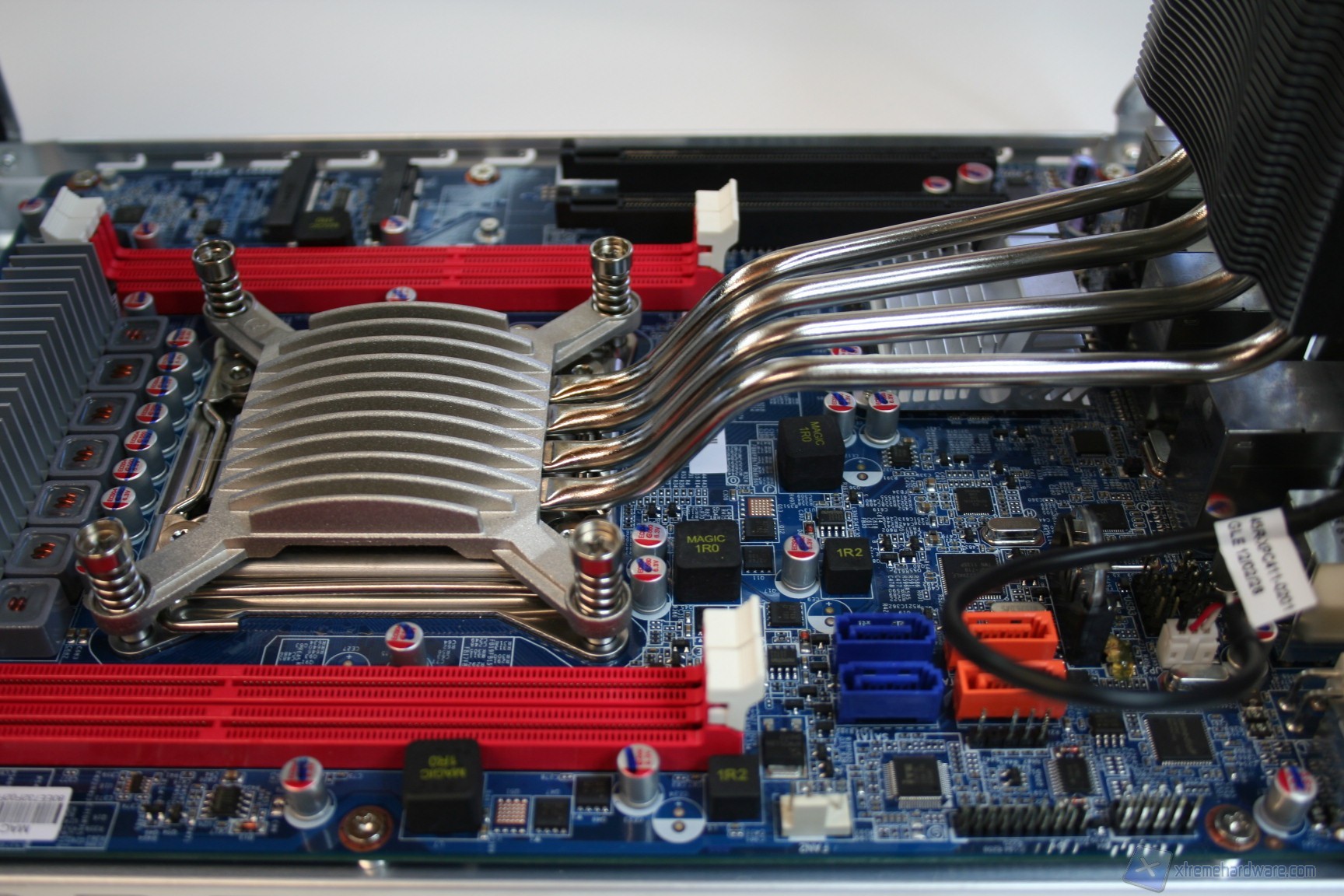 Senza ripetere le singole caratteristiche, che abbiamo già riportato precedentemente, ci limiteremo a mostrarvi delle fotografie dirette di uno dei modelli di scheda madre più interessanti che abbiamo avuto il piacere di mostrarvi. Questo cabinet ospita una scheda madre unica nel suo genere, dotata quindi di uno standard proprietario Shuttle che permette, per la prima volta in assoluto, di integrare il socket LGA 2011 all’interno di cabinet avente queste dimensioni ridottissime. E’ davvero un primato dell’ingegneria informatica, e siamo felici di mostrarvela: