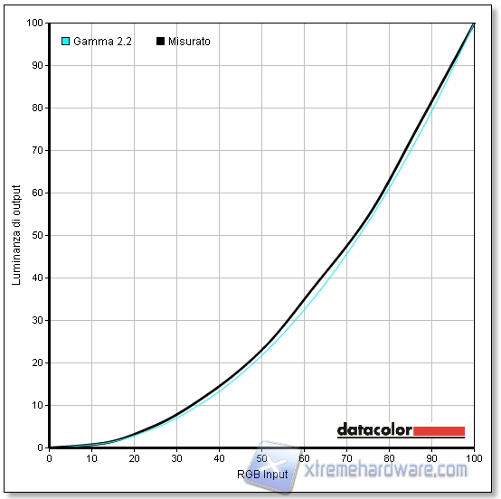 La fedeltà cromatica nelle condizioni out-of-box risulta buona, con un Delta-E medio di 1,54.