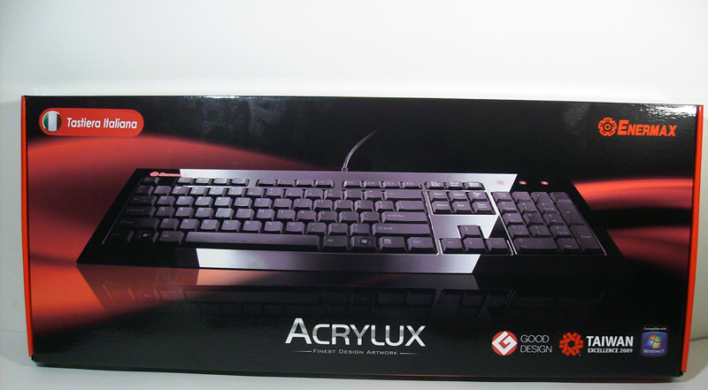 La tastiera Acrylux si presenta con tutti gli angoli smussati, con una lavorazione effettuata a regola d’arte per garantire il massimo confort durante il suo utilizzo. Grazie all’utilizzo della resina acrilica la nuova Enermax è riuscita a vincere due premi in Giappone e Taiwan.