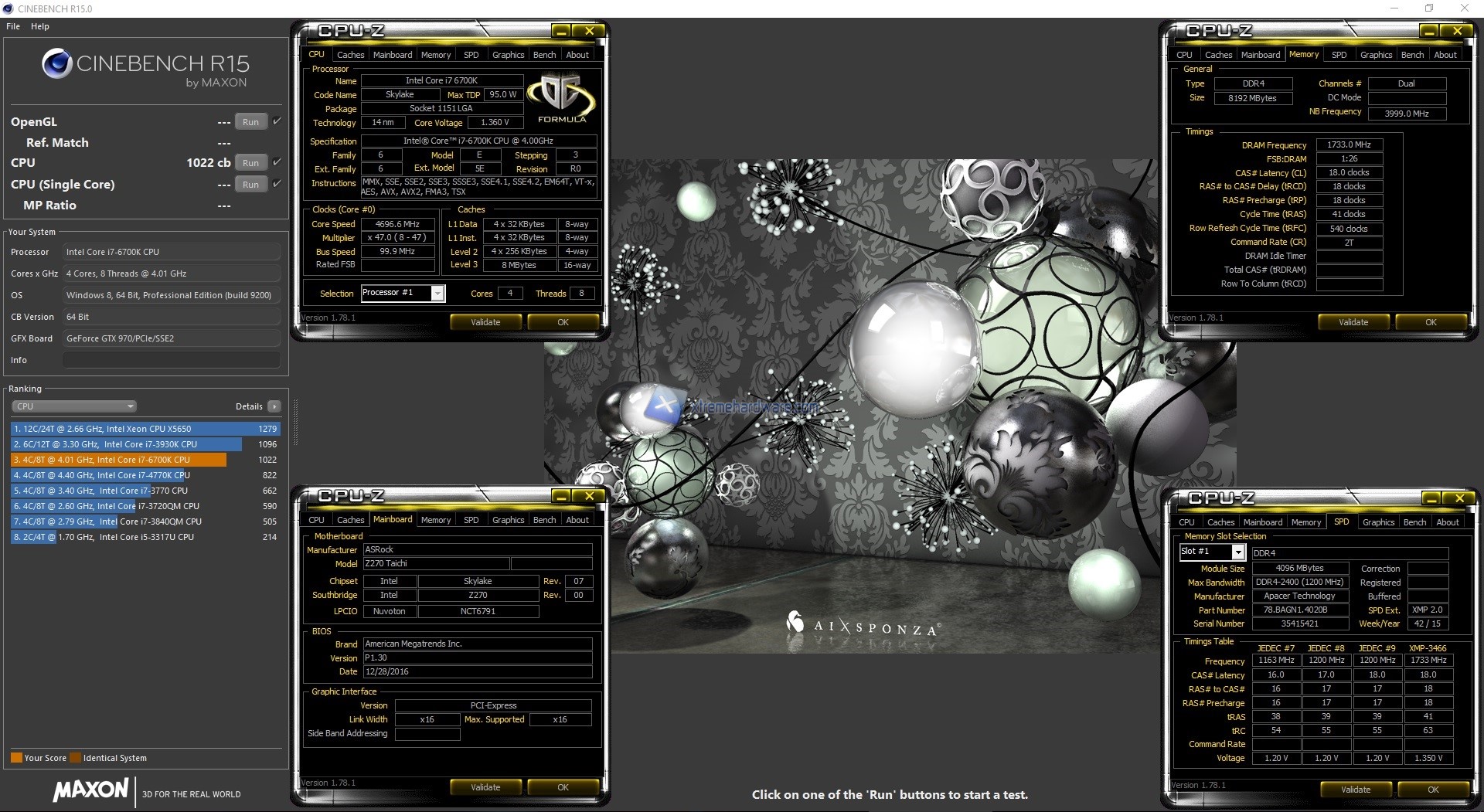 Per le prove di overclock manuale ci siamo basati sul raggiungimento di una frequenza stabile nel rapporto tipologia di dissipazione (in questo caso un AIO da 240mm) e temperature. Per testare la stabilità della scheda madre ci siamo serviti anche qui del software Cinebench R15 utilizzato anche per i test a default al fine di trovare una buona stabilità per un eventuale Daily-Use. Teniamo a precisare che la CPU utilizzata un i7-6700K ha una frequenza base di 4.0GHz e con Turbo attivo di 4.2GHz 4c/8t quindi ci siamo limitati a salire ancora di diversi MHz per trovare il giusto equilibrio come detto poc’anzi. Le RAM utilizzate come abbiamo visto sono un kit da 8GB con frequenza di 3466MHz impostate tramite BIOS con il profilo XMP in modo tale da non creare instabilità durante la fase di overclock della sola CPU. Il software Cinebench R15 lo abbiamo eseguito anche questa volta in modalità Multithreading in modo tale che ogni singolo Core venisse impiegato nel calcolo del rendering di poligoni.
