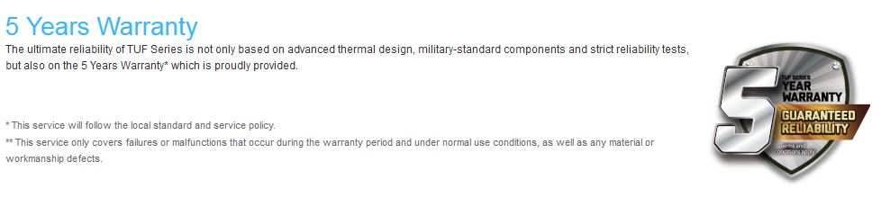 Su tutta la serie TUF ASUS offre una garanzia di 5 anni contro i 3 delle altre schede madri ASUS.