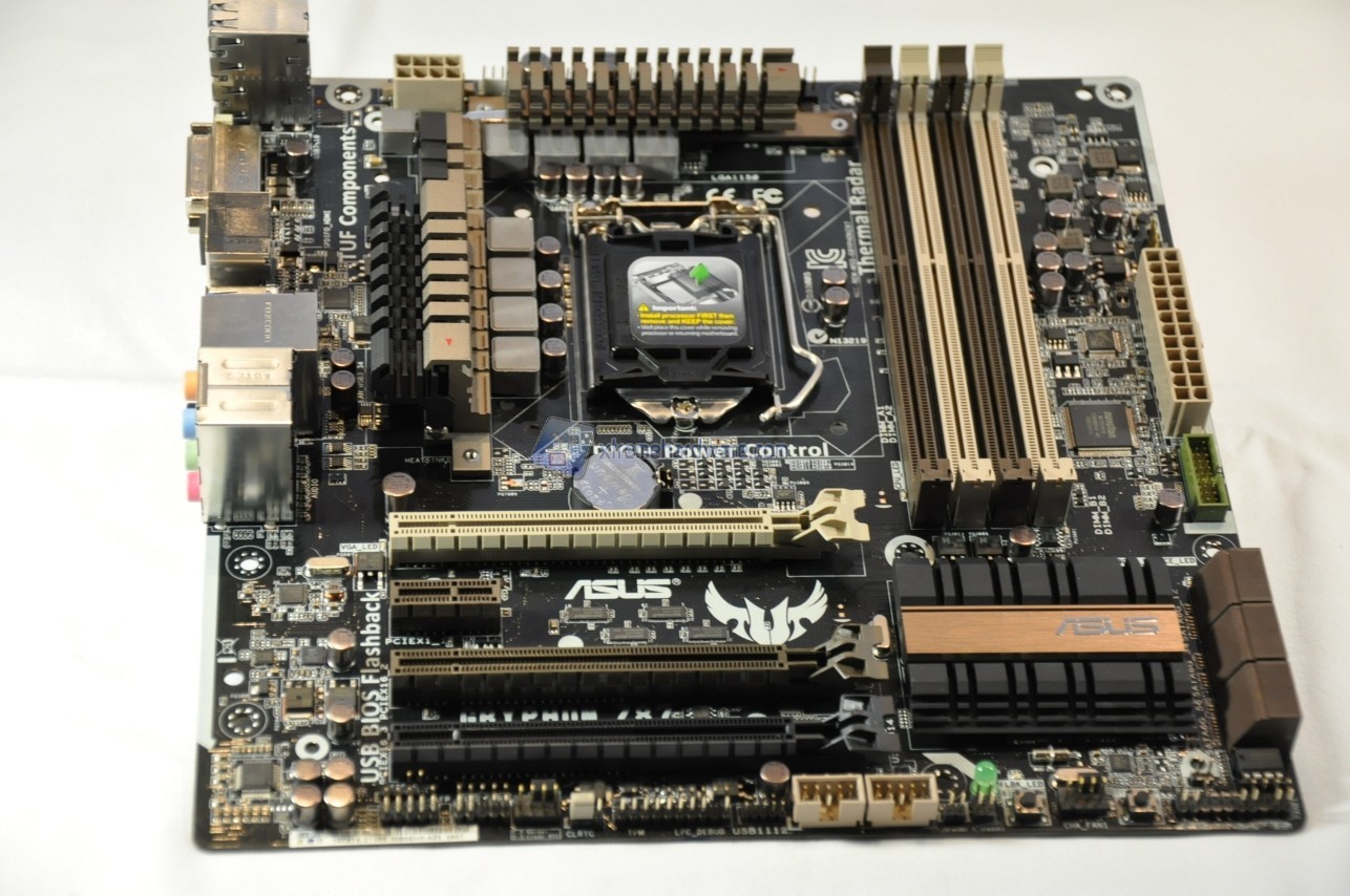 Il layout è affollato di componenti, ma piacevole alla vista e caratterizzato dai colori militari tipici di questa serie, l’avana e il marrone. Molto curati i dissipatori dei VRM, in cui possiamo riconoscere, stilizzate, le lettere della serie TUF. La cura dei dettagli è sorprendente se pensiamo che il layout è stato pensato per essere ricoperto dal Thermal Armor.