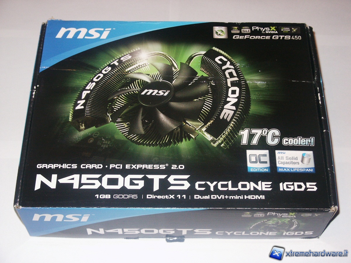 La scheda è giunta in redazione all’interno della confezione di cartone originale prevista da MSI. Nella parte frontale spicca la foto del dissipatore impiegato su questo modello, oltre alle caratteristiche principali del prodotto contenuto.