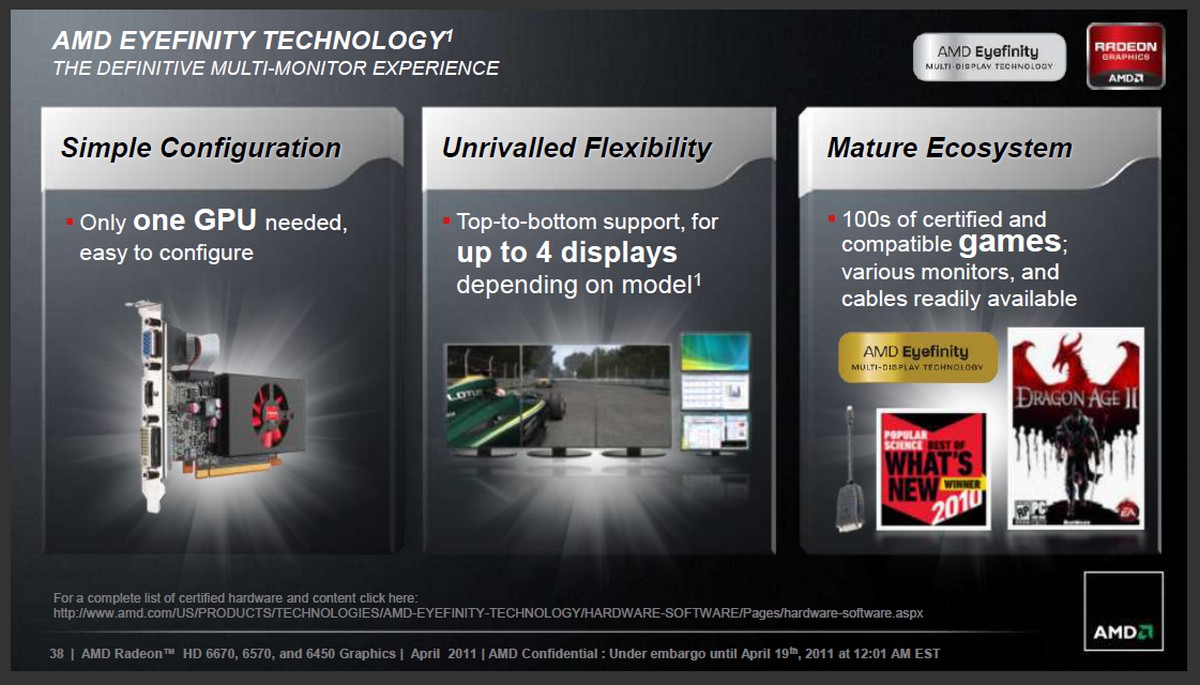 Si parte dall'uso domestico fino ad arrivare all'utilizzo office; sono schede video dedicate a varie fasce di mercato: dal gaming occasionale, come per la HD 6450, fino a giocatori più avanzati che possono trarre maggior beneficio dalla HD 6670. La flessibilità inoltre di queste schede è davvero un punto di riferimento: grazie alla tecnologia EyeFinity di AMD, si possono usare più schermi in contemporanea arrivando ad un massimo di tre. Inoltre il supporto a tecnologie AMD HD3D per l'uso di dispositivi 3D, accelerazione dei software più comuni tramite GPU, UVD di terza generazione e qualità di immagine ad altissimi livelli fanno di queste schede una scelta obbligata.