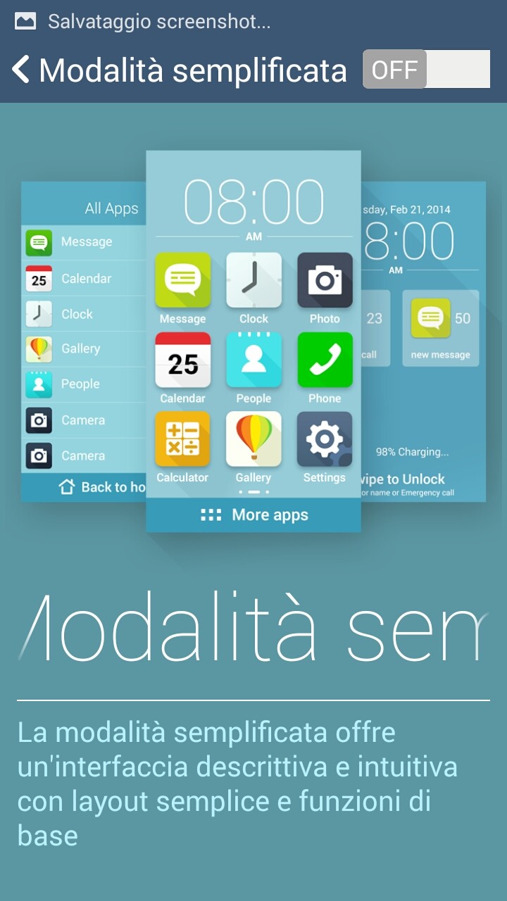 Altra feature molto interessante è la modalità semplificate che, parola di ASUS , offre un'interfaccia descrittiva ed intuitiva con layout semplice e funzioni di base. La modalità semplificata tornerà sicuramente utile agli utenti che hanno minor dimestichezza con gli smartphone e rappresenta un importante punti di forza che nessun dispositivo della concorrenza possiede.