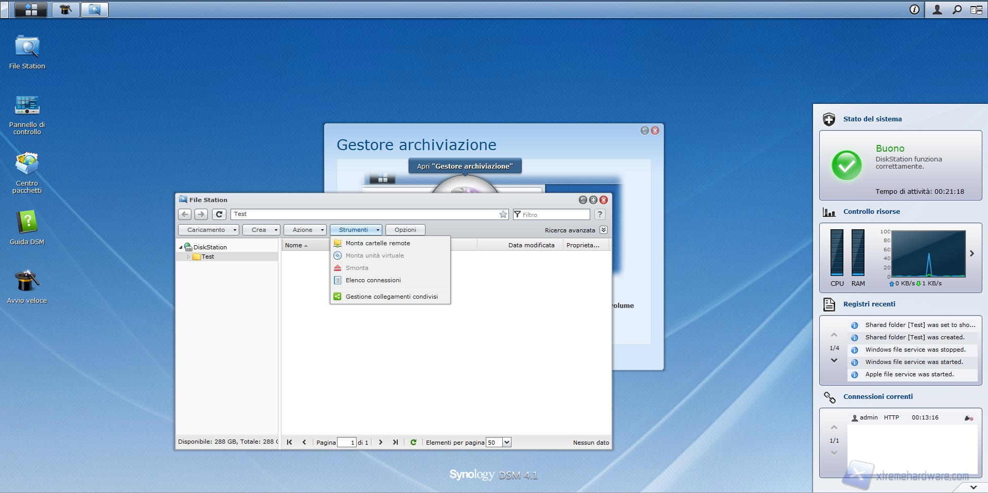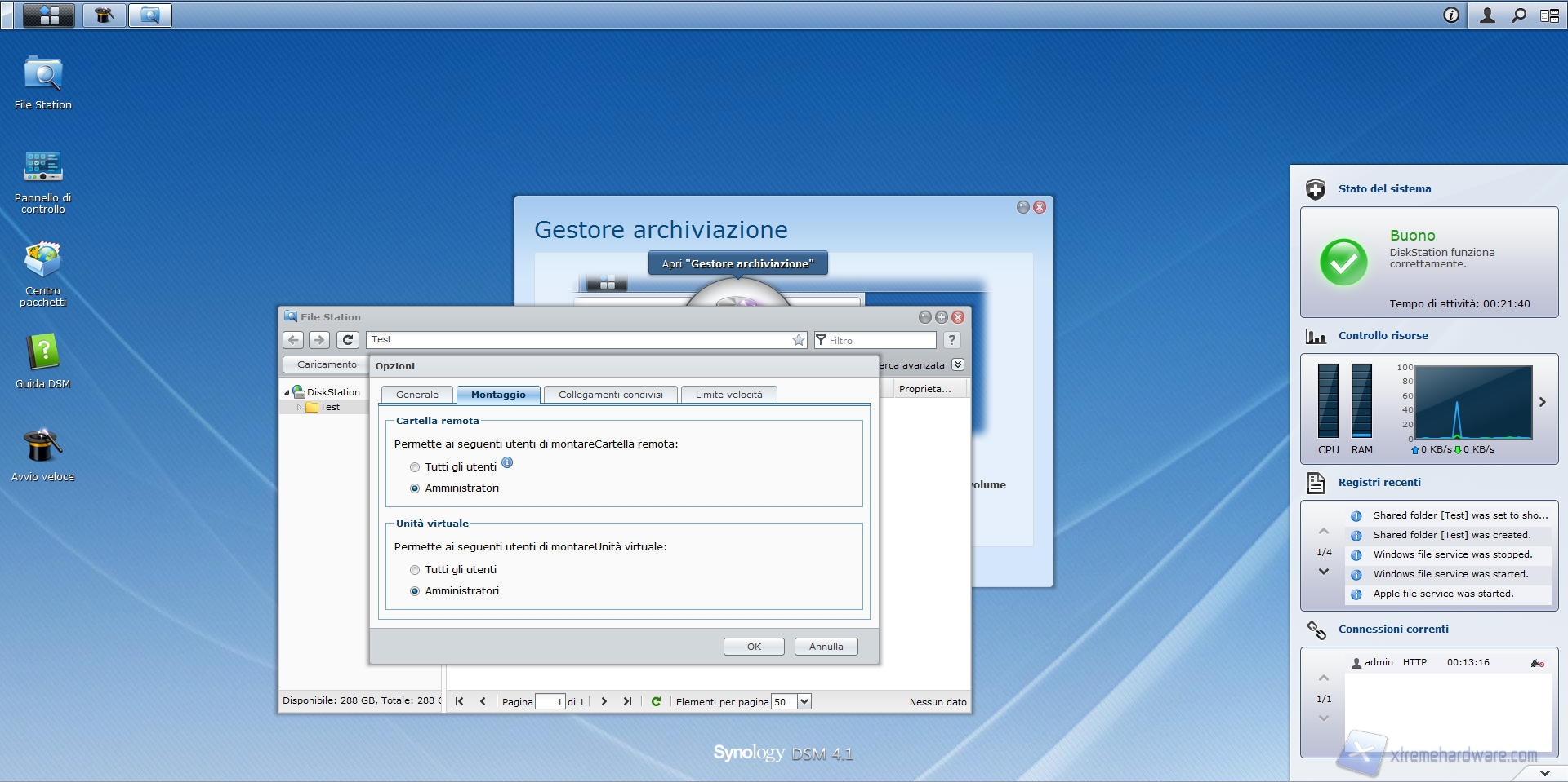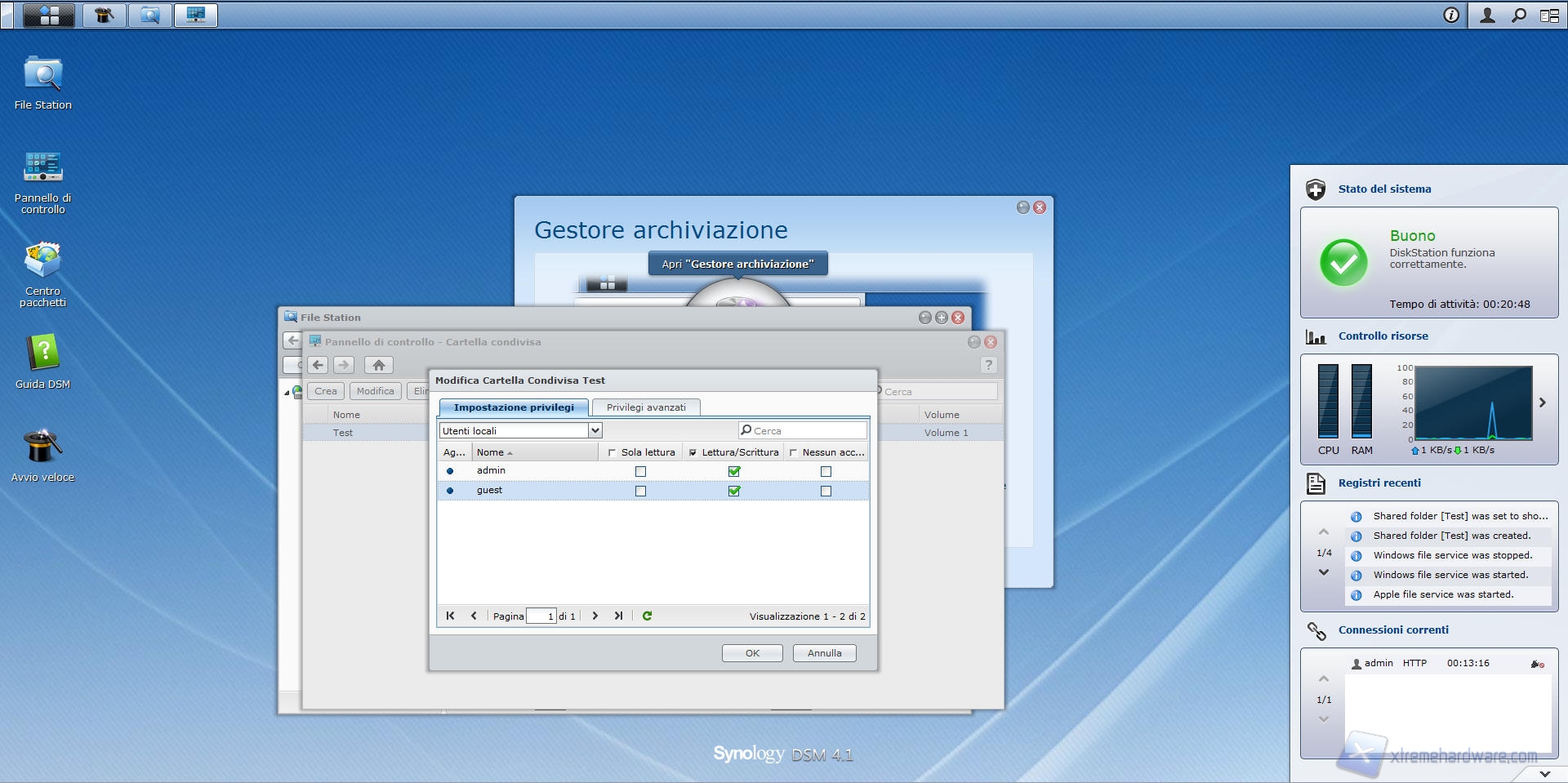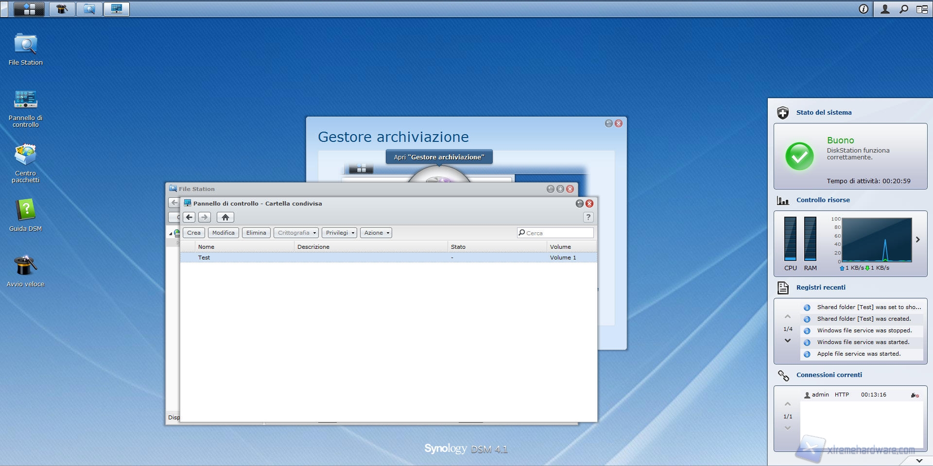 Synology DS412+: File Station e Pannello di Controllo
