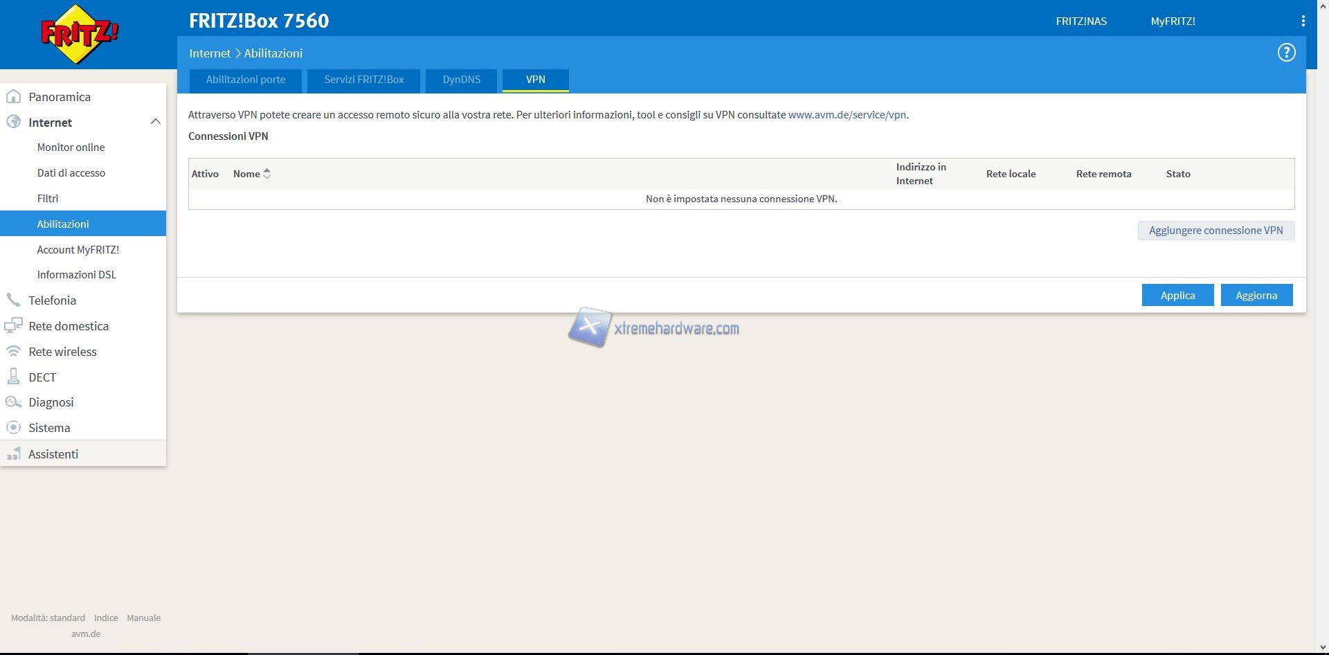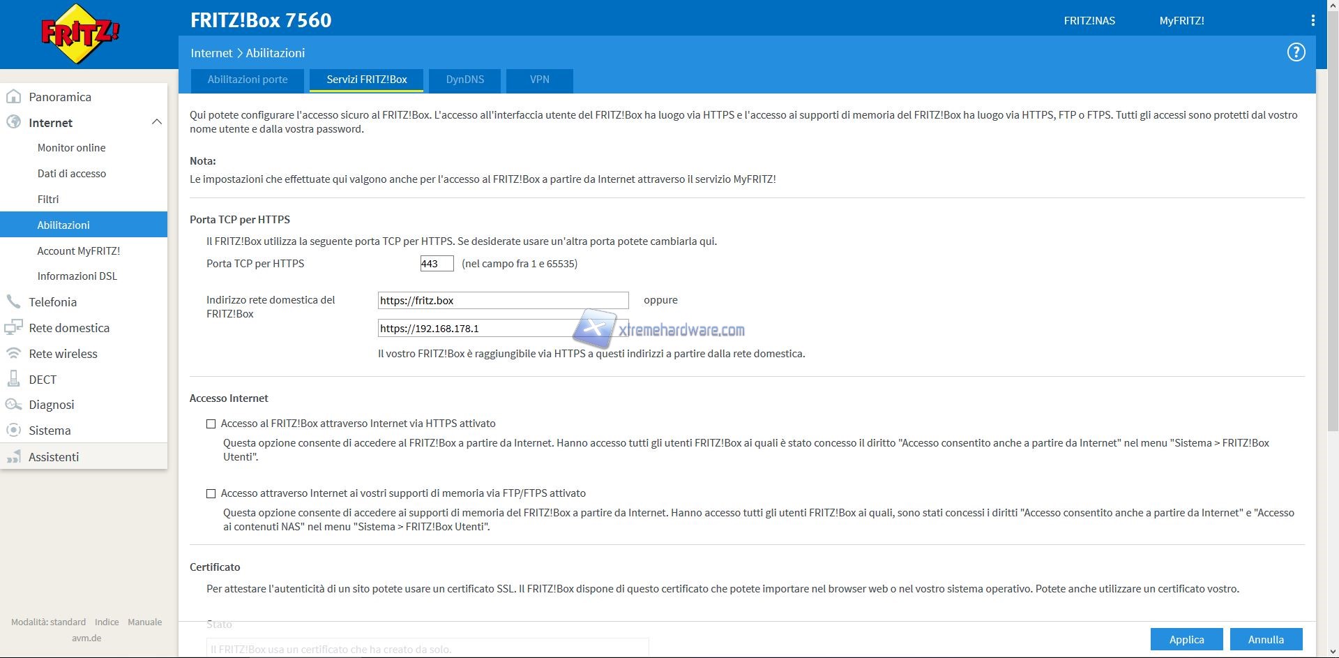 Per accedervi dal browser dovrete digitare l’indirizzo http://fritz.box e verrete rimandati alla pagina iniziale del Modem/Router. Nel caso in cui tramite questo indirizzo non dovreste riuscire a collegarvi al router, dovrete cercare l’indirizzo nelle proprietà della scheda di rete.