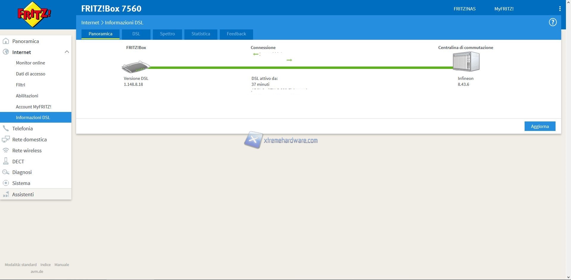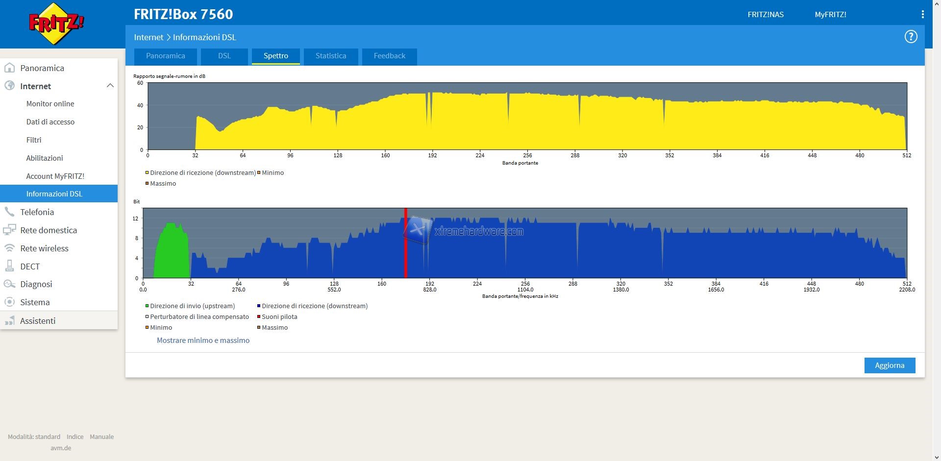 Bene, ora tornando ai Menù a nostra disposizione partiamo con ‘’Internet’’ dal quale potremo modificare e personalizzare ogni voce e informazione circa la connessione di dispositivi, porte, filtri, DNS e molto altro ancora al nostro Modem/Router nonché tenere traccia di dati specifici circa la portante, spettro della connessione e altri valori che spesso non vengono mostrati in altri prodotti.