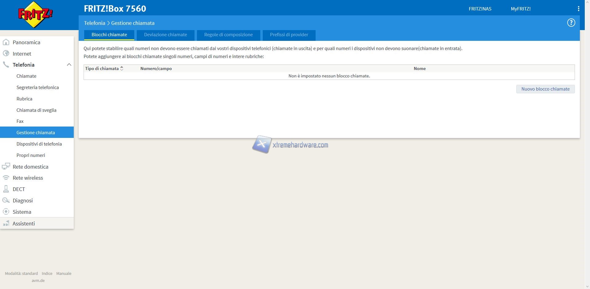 Oltre a questo Menù troveremo altri quali ‘’Internet’’, ‘’Telefonia’’, ‘’Rete Domestica’’, ‘’Rete Wireless’’, ‘’DECT’’, ‘’Diagnosi’’, ‘’Sistema’’ e ‘’Assistenti’’.