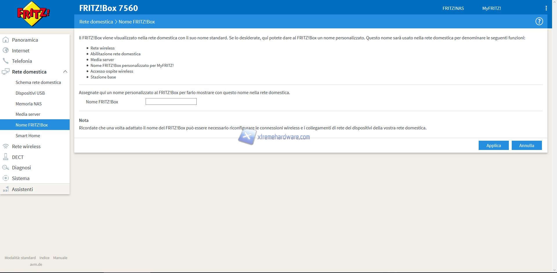 Prima di procedere con i diversi Menù vogliamo ricordare come AVM con la serie FRITZ!Box metta a disposizione anche ‘’FRITZ!NAS’’ interessante funzione per coloro che vogliono creare un piccolo NAS senza acquistare un Hardware dedicato. Ci basterà solo avere a disposizione un Hard Disk Esterno da collegare al dispositivo. Con una rapida impostazione di alcuni parametri saremo pronti a condividere all’interno della nostra rete file multimediali e non.