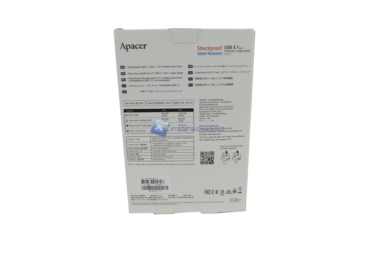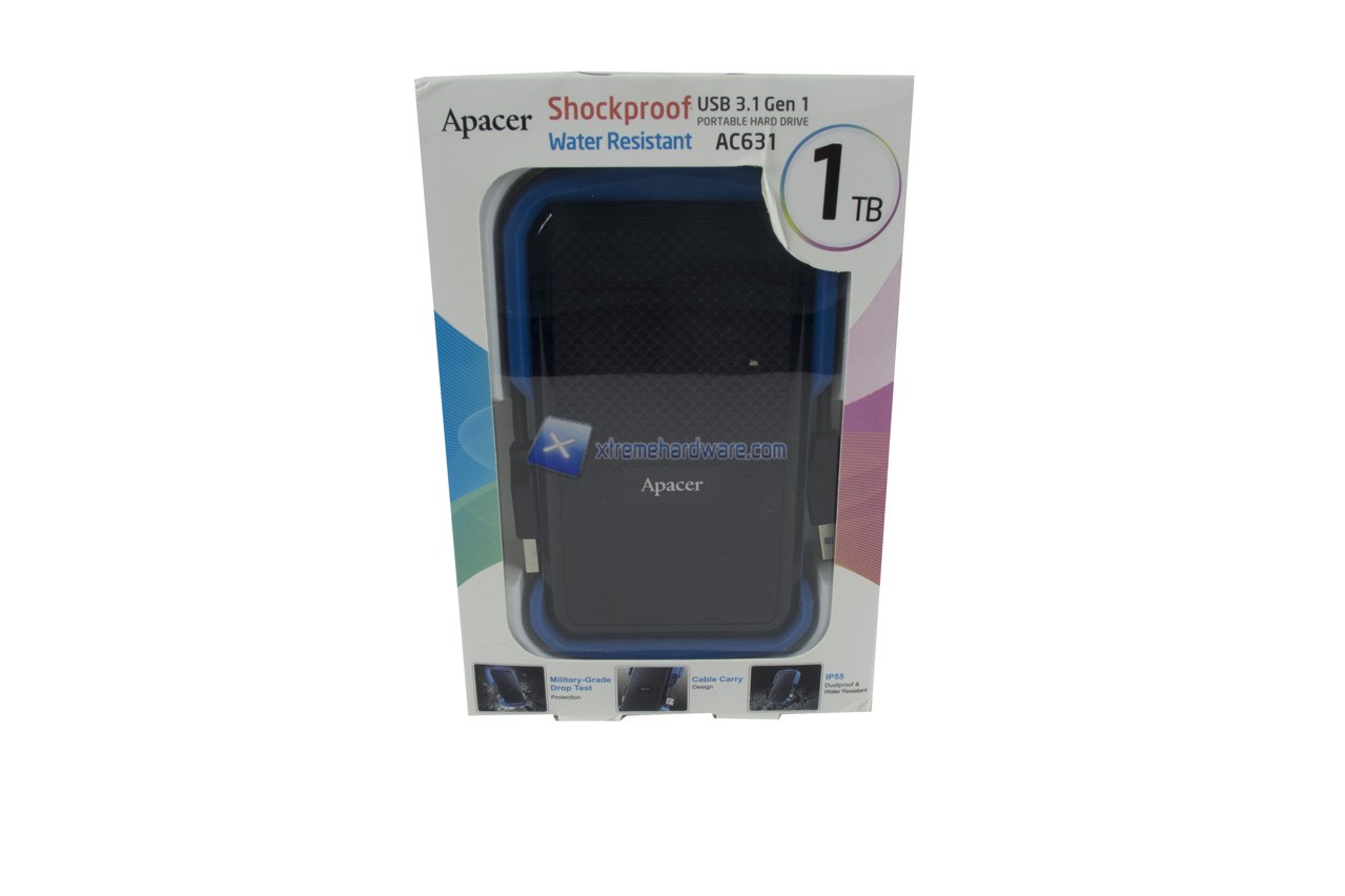 La confezione in cui viene alloggiato l’Apacer AC631 è la stessa che abbiamo visto con il modello AC730 ovvero confezione di cartone di medie dimensioni con un’apertura centrale in plastica trasparente per prendere visione immediatamente del prodotto e un contorno in cartone riportante modello, capacità e informazioni aggiuntive.