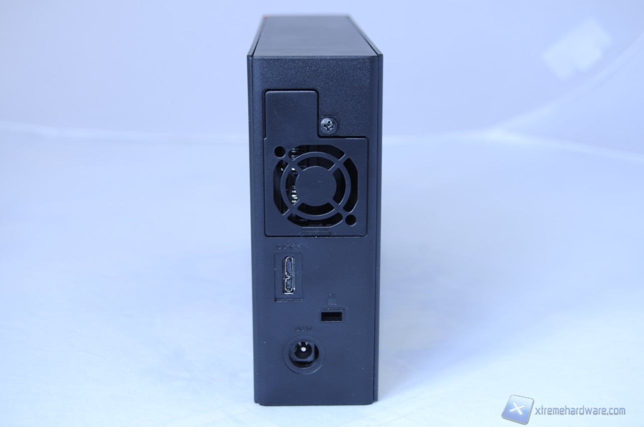 Sul retro trovano posto la porta USB 3.0 ed il connettore jack per l'alimentazione; notiamo inoltre un'apertura adibita alla fuoriuscita di aria calda proveniente dal disco.