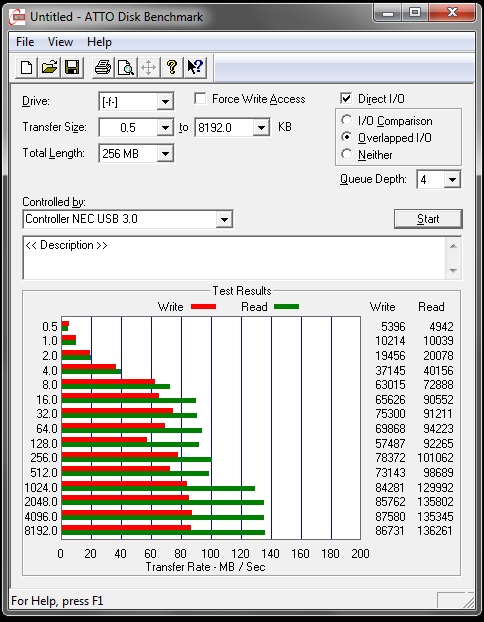 Dopo aver visto i risultati usando il controller USB 2.0, passiamo ad analizzare i risultati utilizzando il controller NEC USB 3.0 fornito nella nostra Asus Rampage III Formula e che si è rilevato a tutti gli effetti all'altezza delle nostre aspettative, vi mostriamo le immagini dei test eseguiti qui di seguito, i commenti sono davvero superflui, le immagini parlano davvero molto chiaro.
