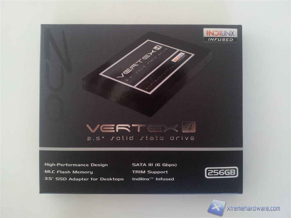 La confezione dell'OCZ Vertex 4 non si discosta graficamente e strutturalmente da quella utilizzata dagli altri drive della casa e risulta molto compatta, elegante e sicura. Le dimensioni della confezione sono molto contenute (154mm x 127mm x 15mm). Sulle due facciate principali, quella posteriore e quella anteriore, sono presenti tutte le informazioni necessarie ad effettuare un corretto acquisto del drive.