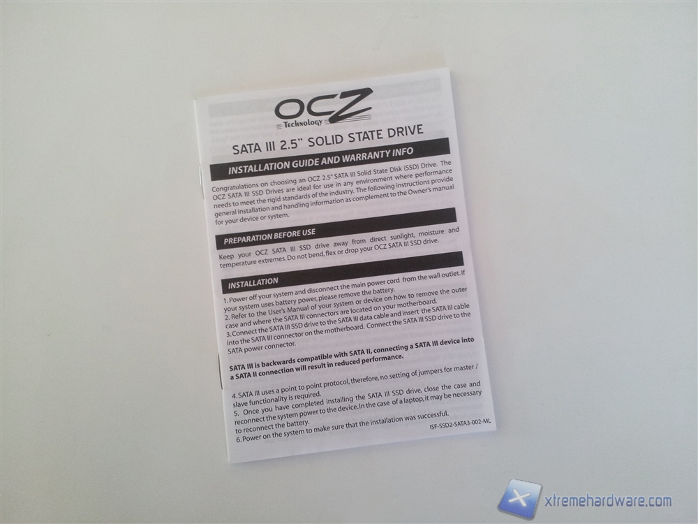Nella parte anteriore spicca l'immagine glossy in rilievo del drive seguita dalla denominazione del modello, cromata ed anch'essa in rilievo. Poco più in basso sono presenti alcune informazioni riguardanti il drive e l'adesivo inerente alla capacità del drive acquistato; nel nostro caso, il modello offertoci dalla OCZ, è da 256GB. In alto a destra è presente invece il bollino Indilinx Infused che sta ad indicare l'utilizzo del controller Indilinx.